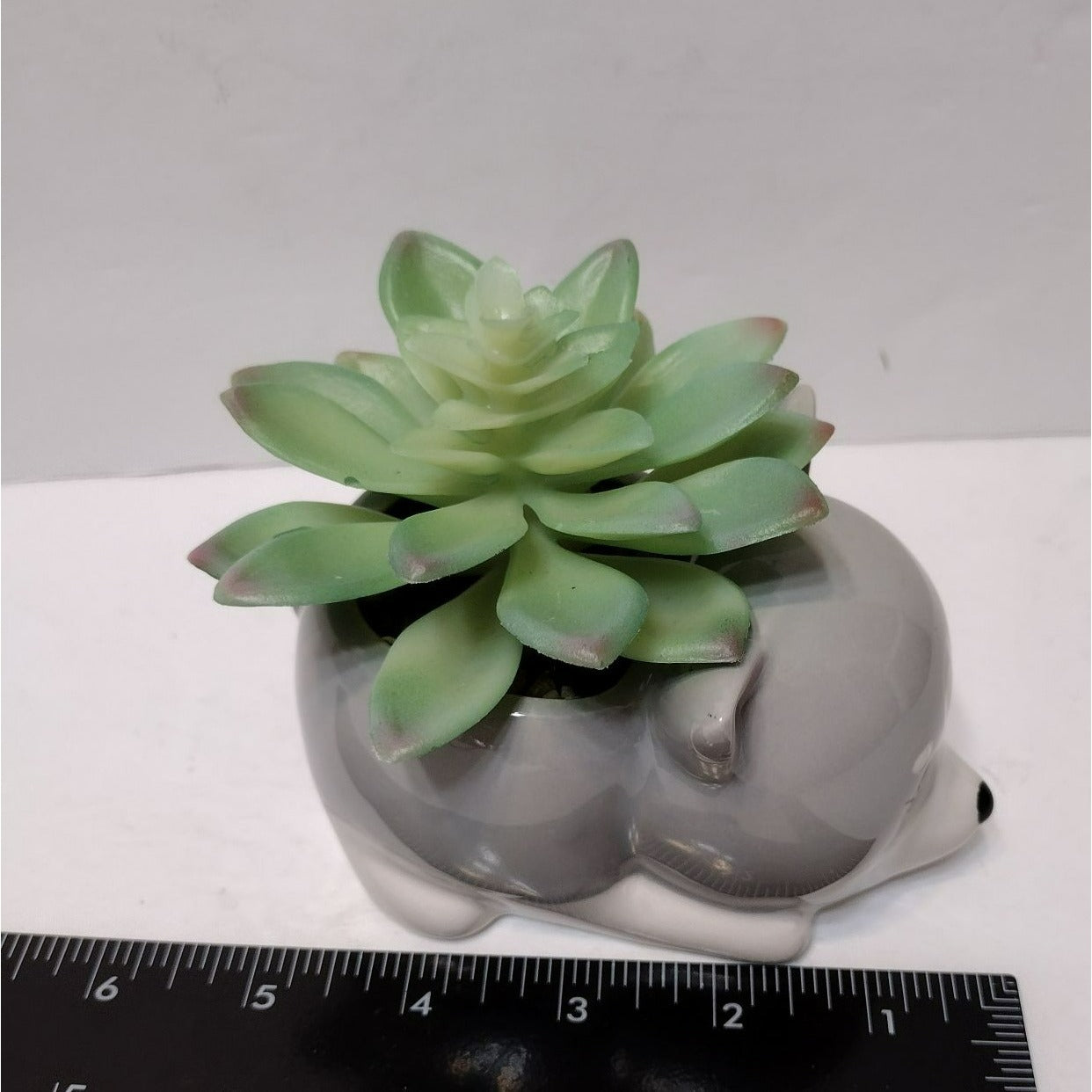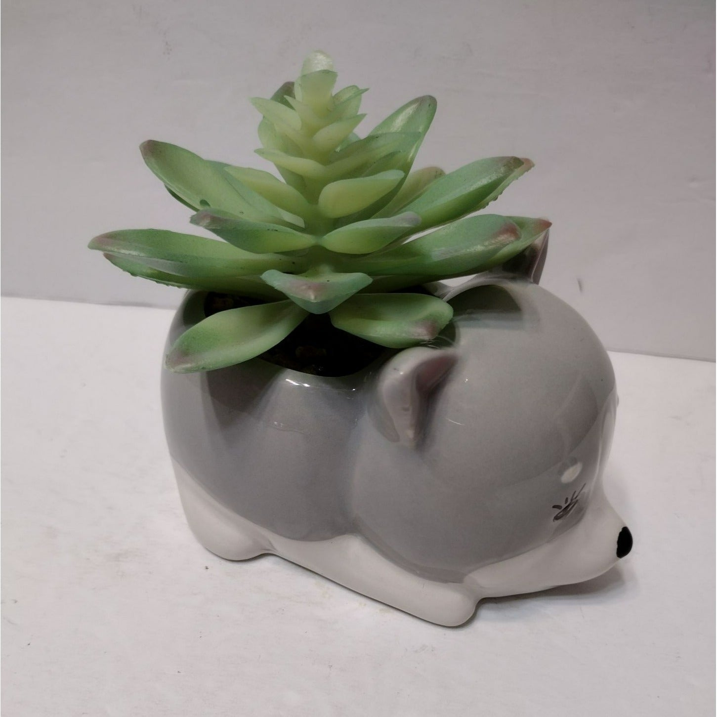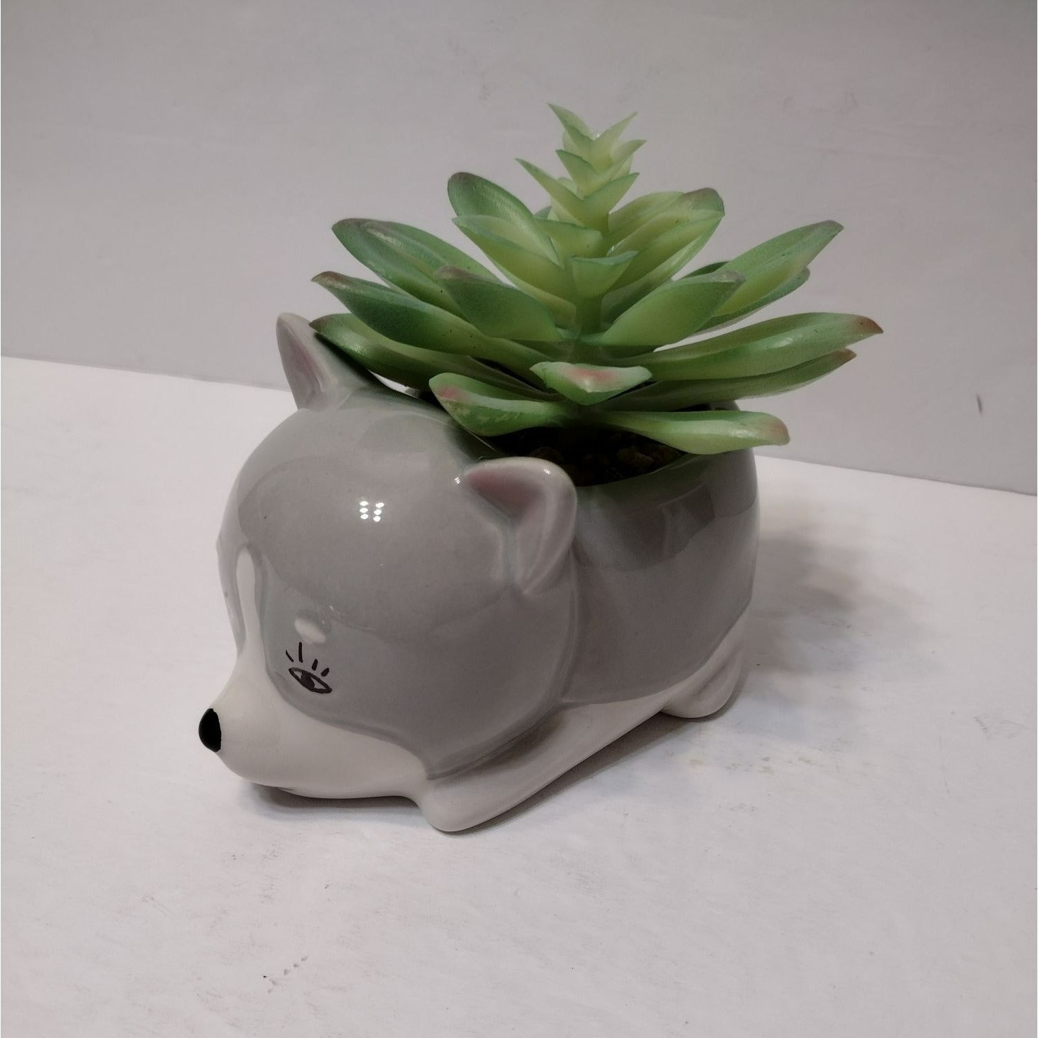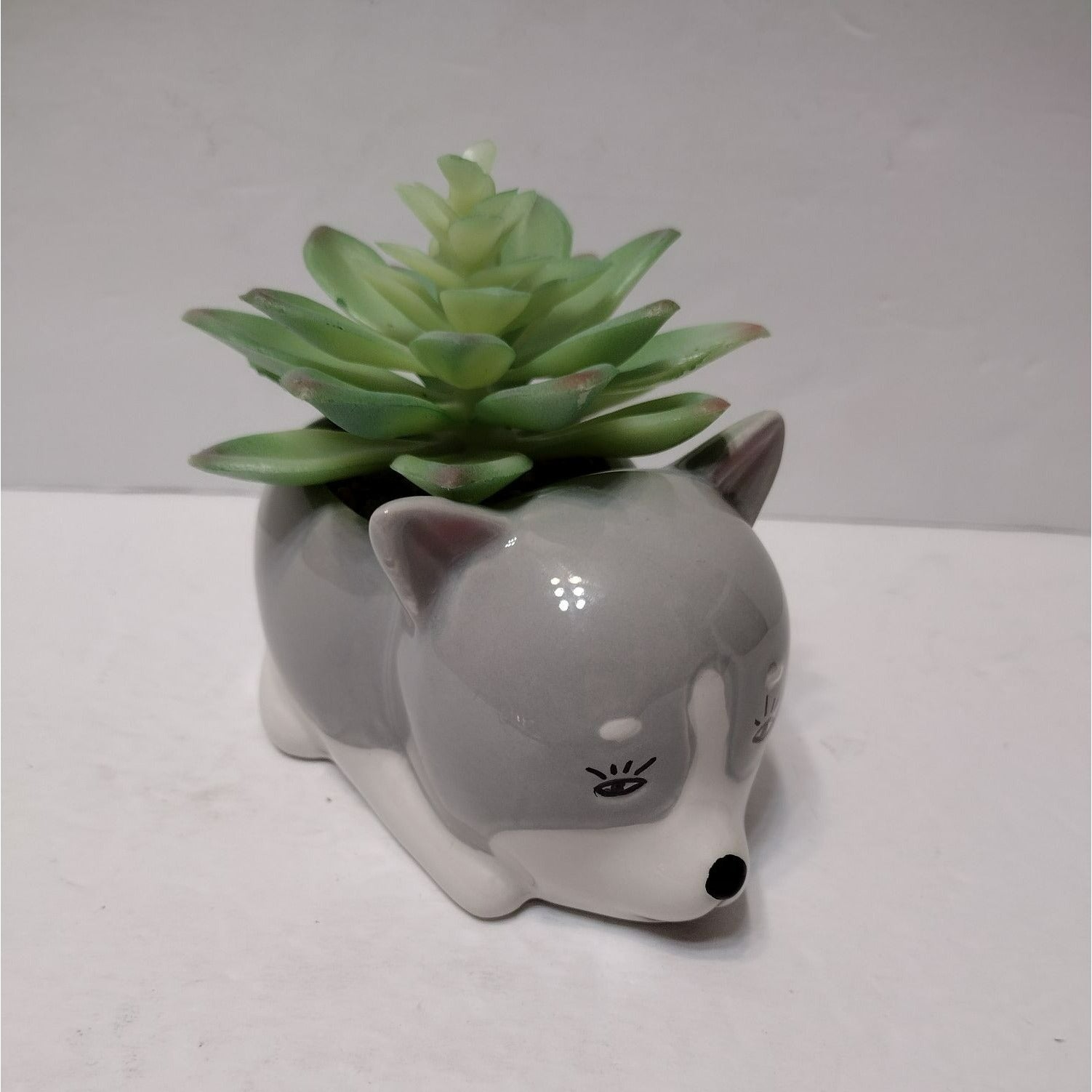Husky Dog with Faux Plant, Grey Ceramic Puppy Animal Succulent Planter Pot Gift