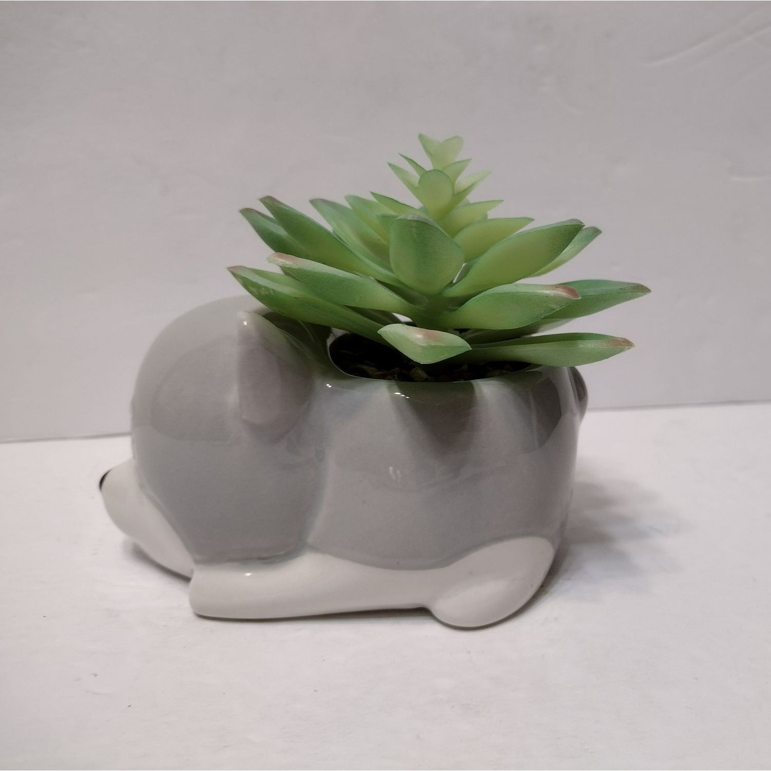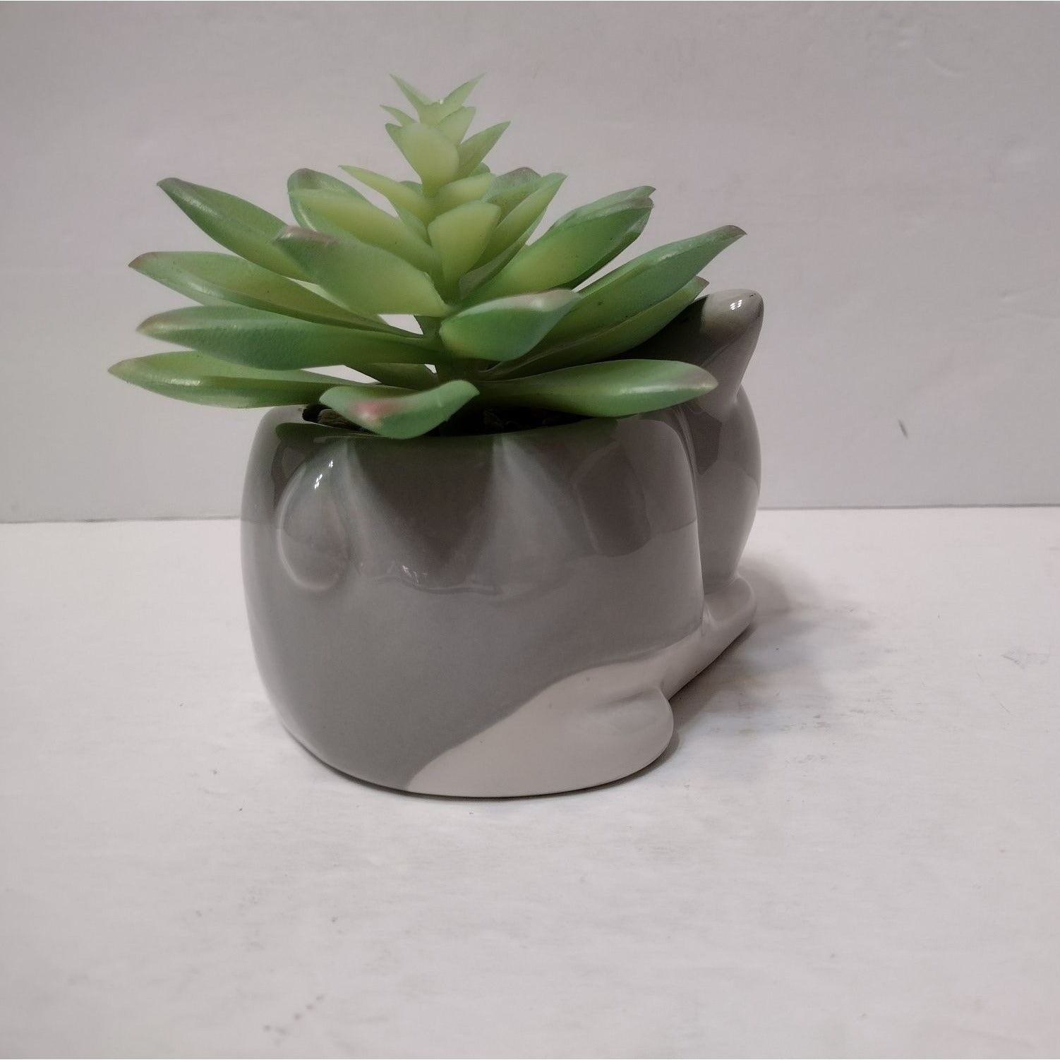 This charming grey ceramic husky dog planter with a faux succulent plant is an eclectic and boho-style gift for any plant or dog lover. Makes a unique decoration piece!
