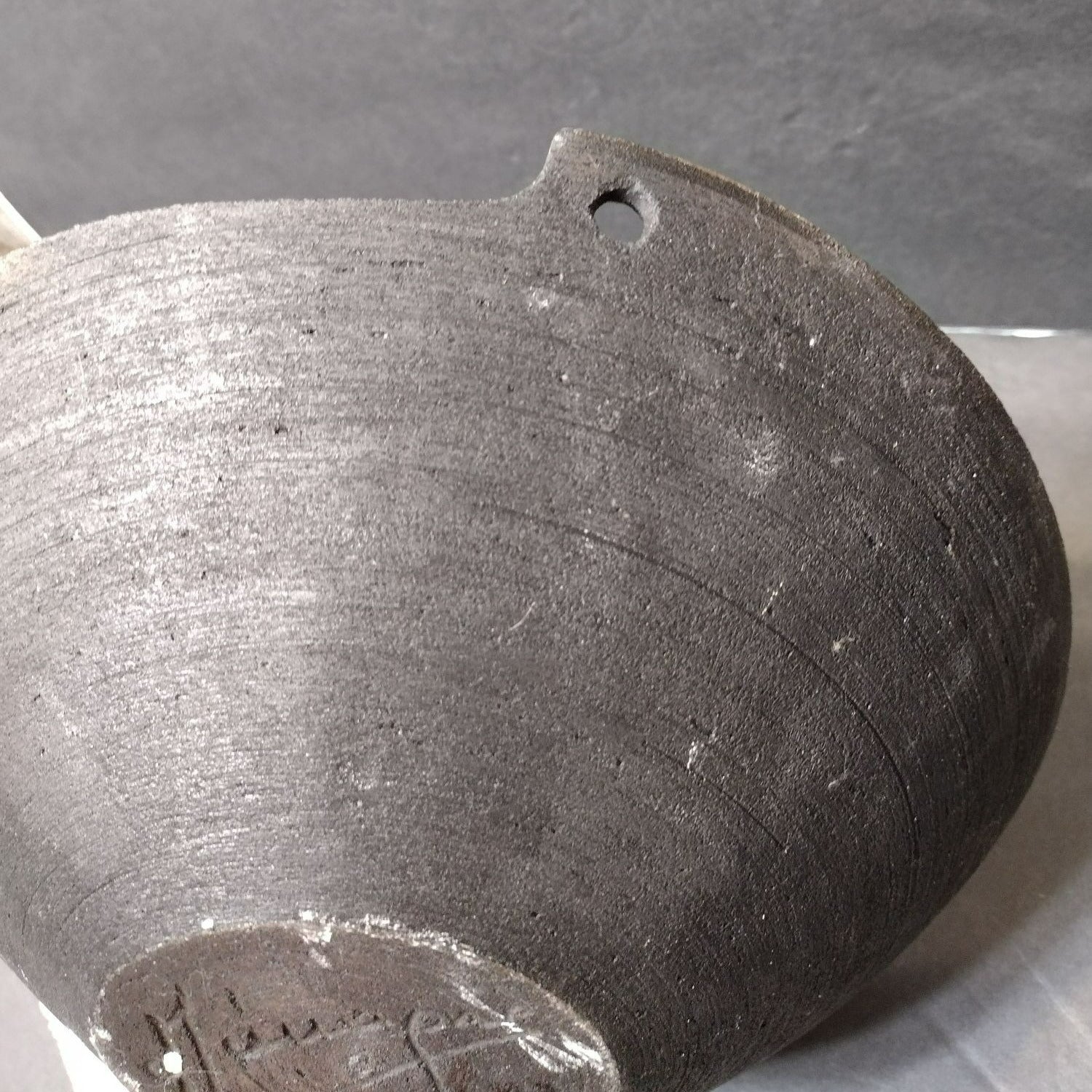 This Large Raku Pottery Bowl is a stunning piece of art pottery, handcrafted and signed on the underneath. It features a beautiful copper glaze on the inside, and a black matt pottery on the outside.