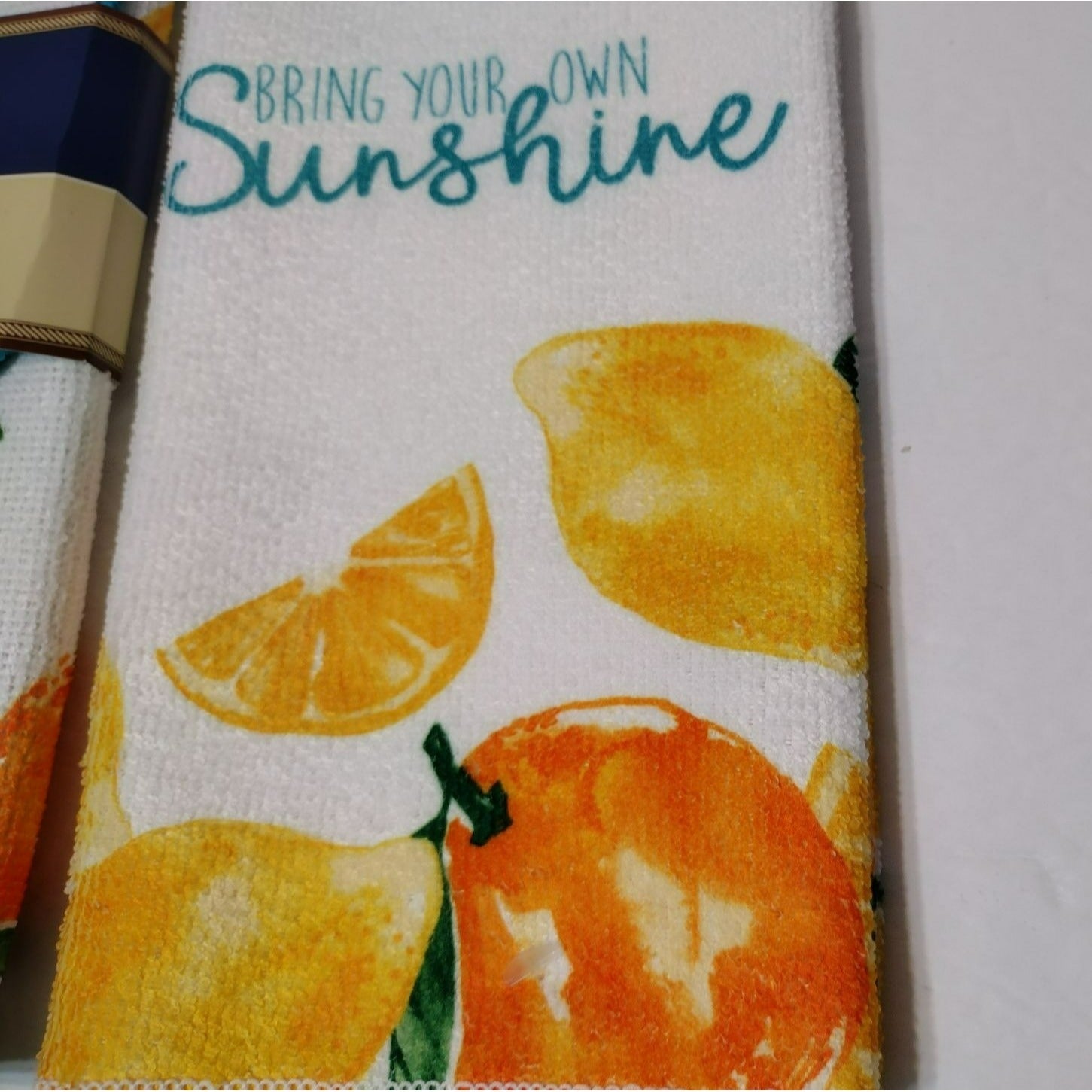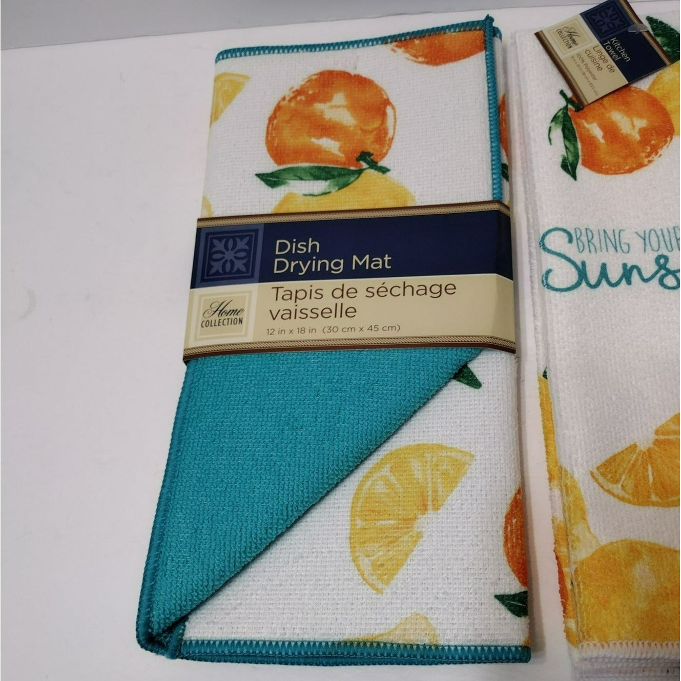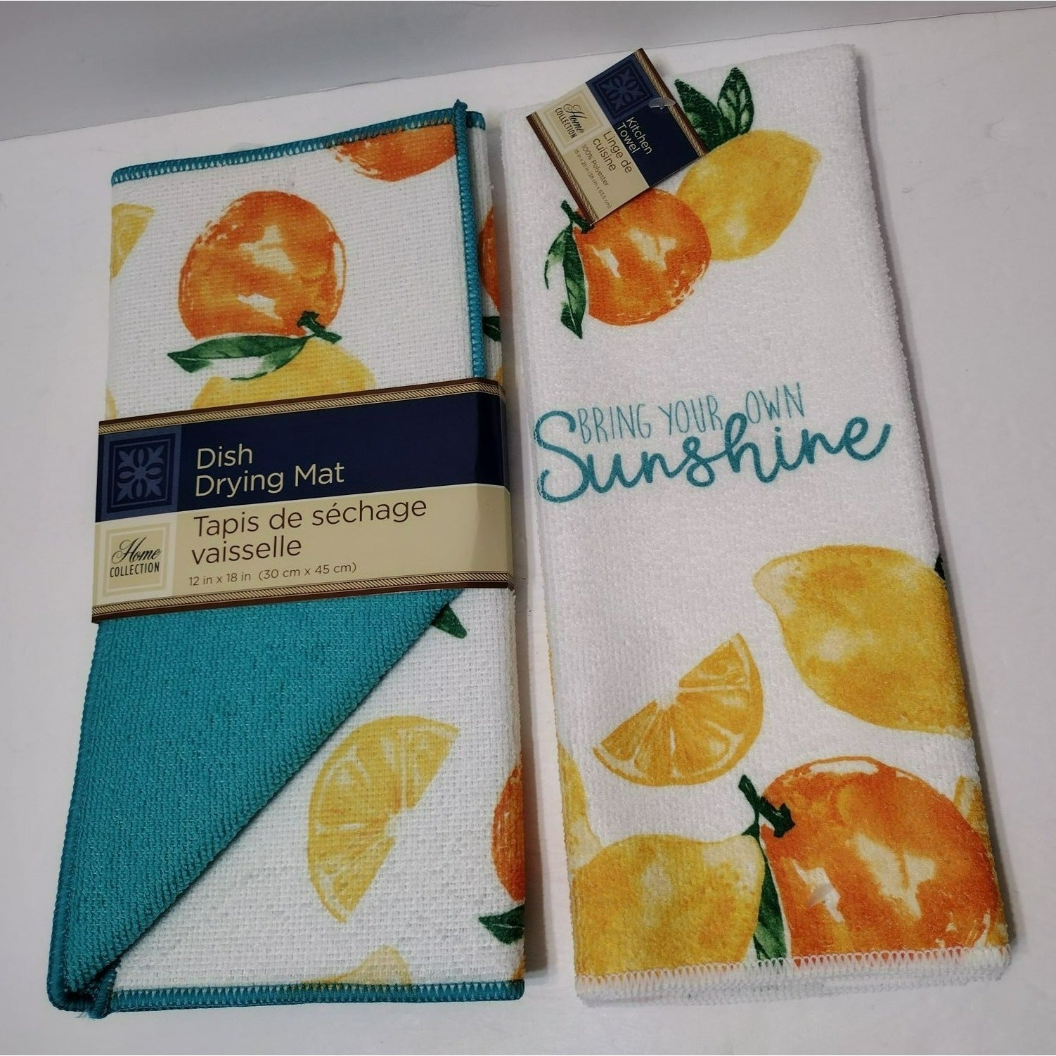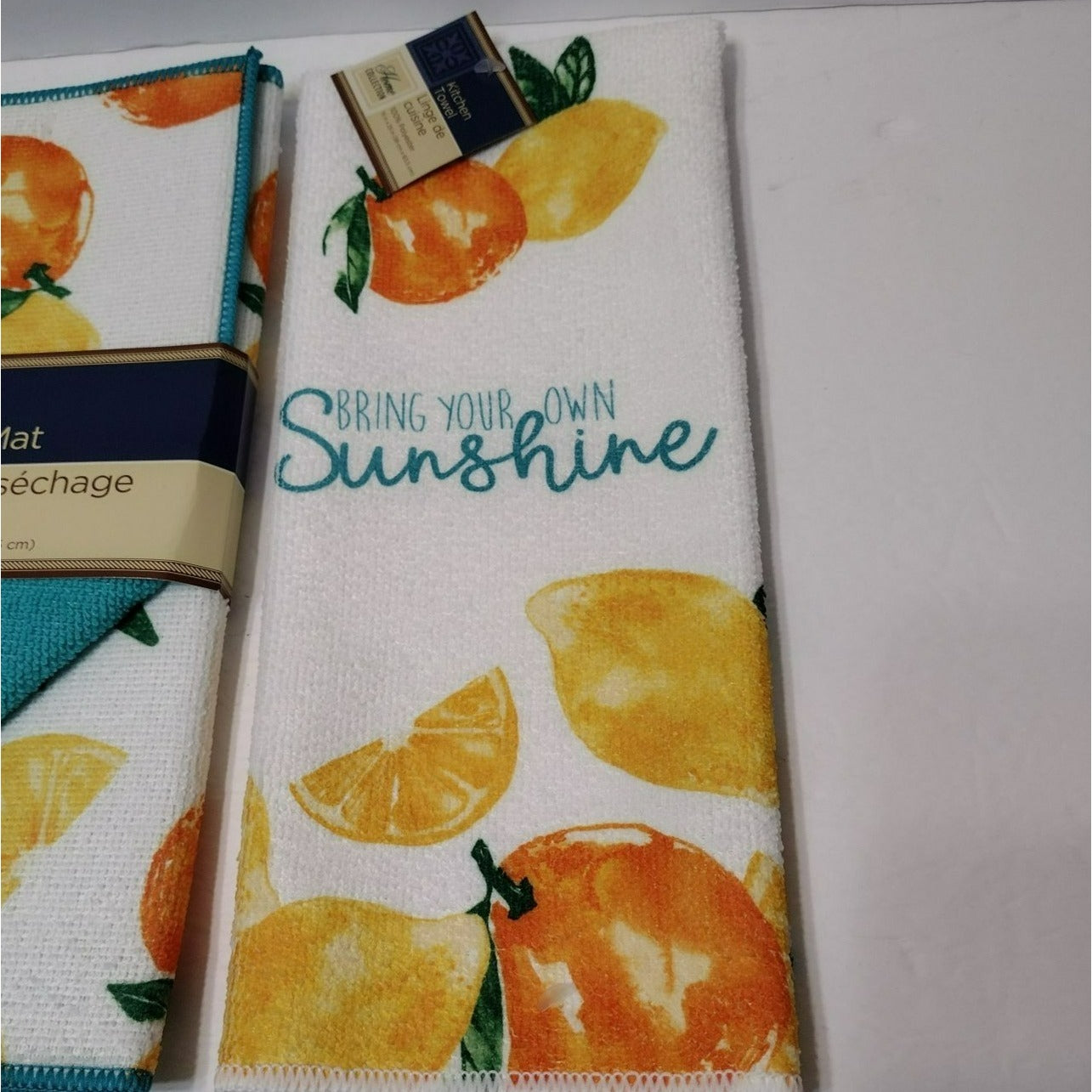 Lemon Citrus Kitchen Linens, Kitchen Towel, Drying Mat, Sunshine Yellow Blue NEW