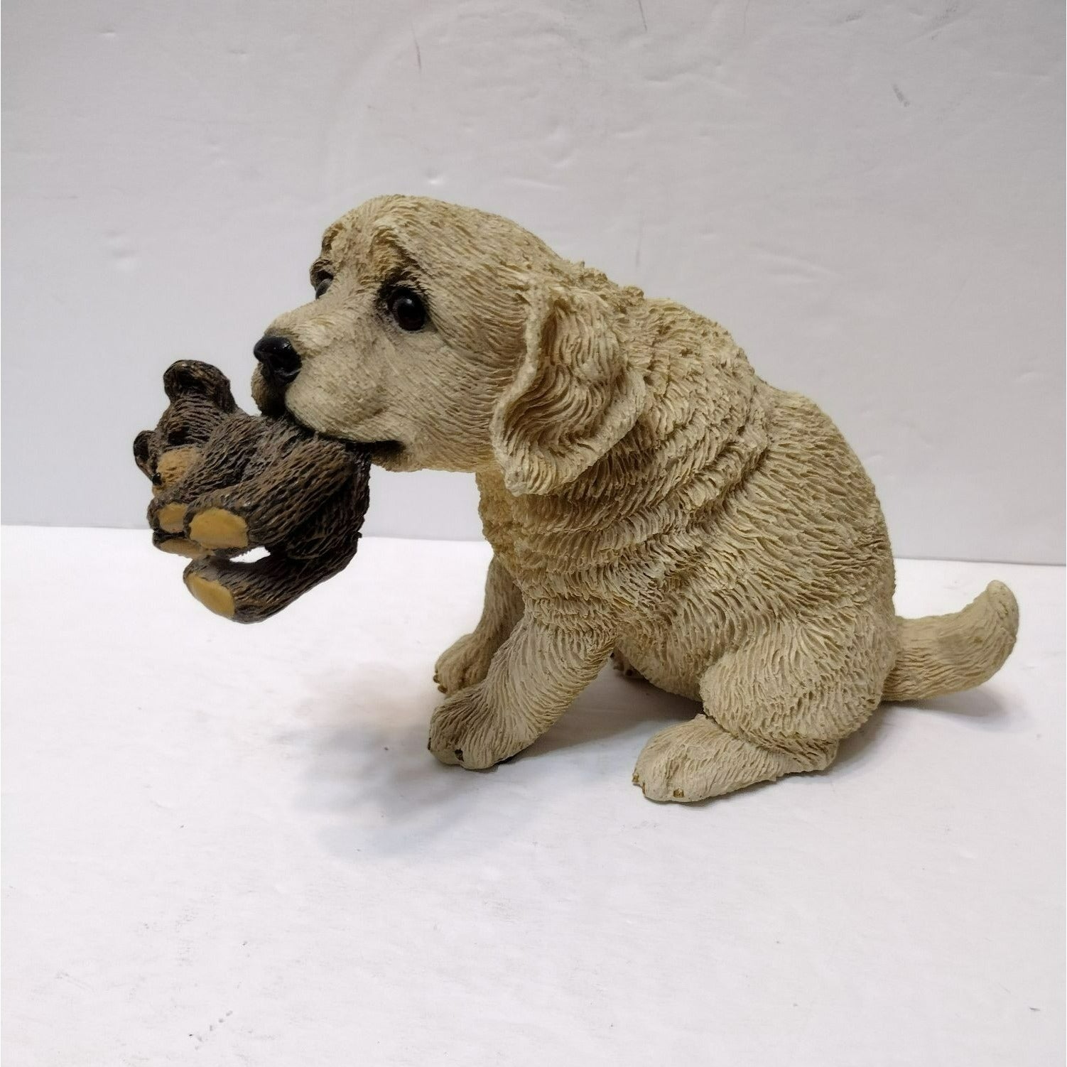 Living Stone Realistic Golden Retriever Dog Figurine, Puppy & Teddy Bear Vintage 1998 Dog Statue