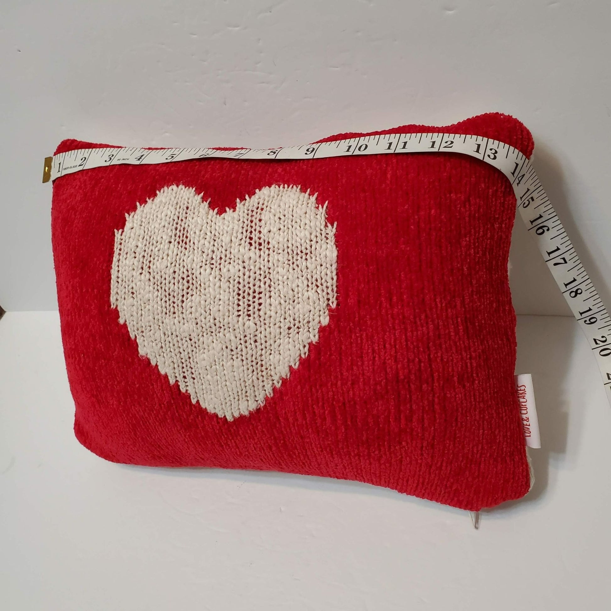 Love & Cupcakes Knitted Heart Accent Pillow, Red White, Valentine, LIKE NEW