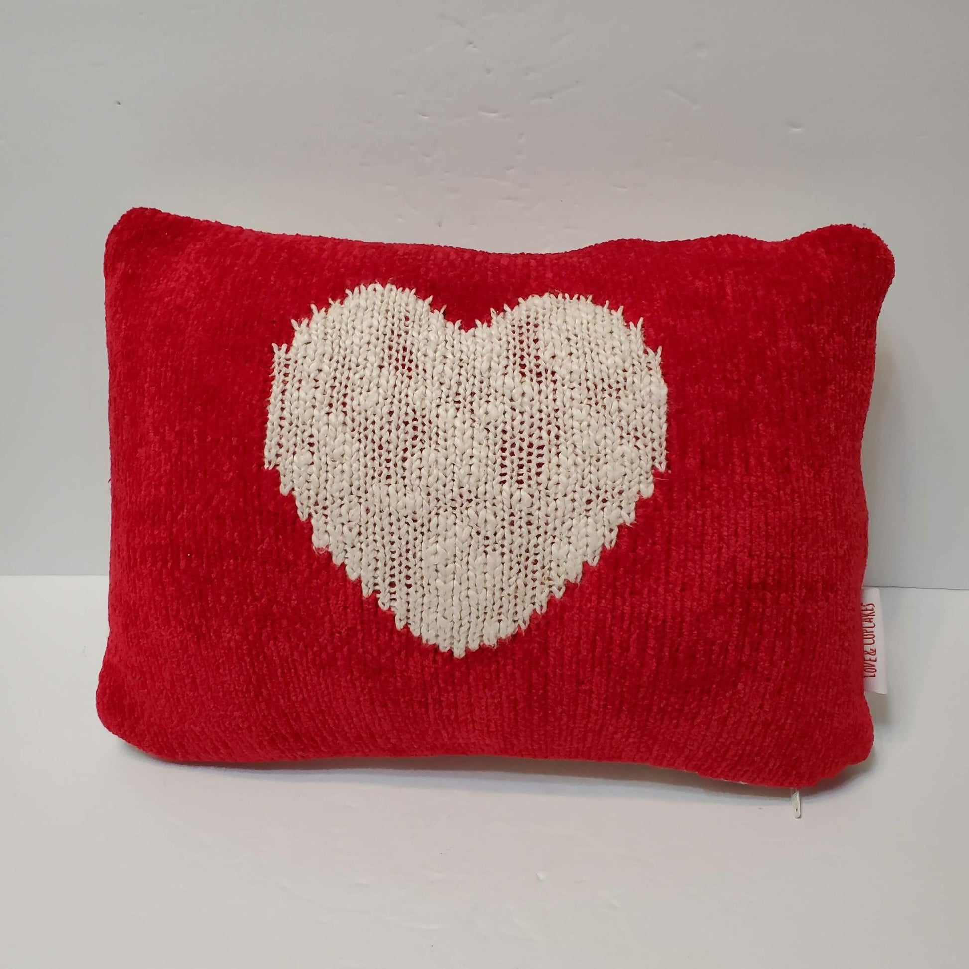 • Knitted, Heart, Valentines, Heart Pillow, Valentine Pillow