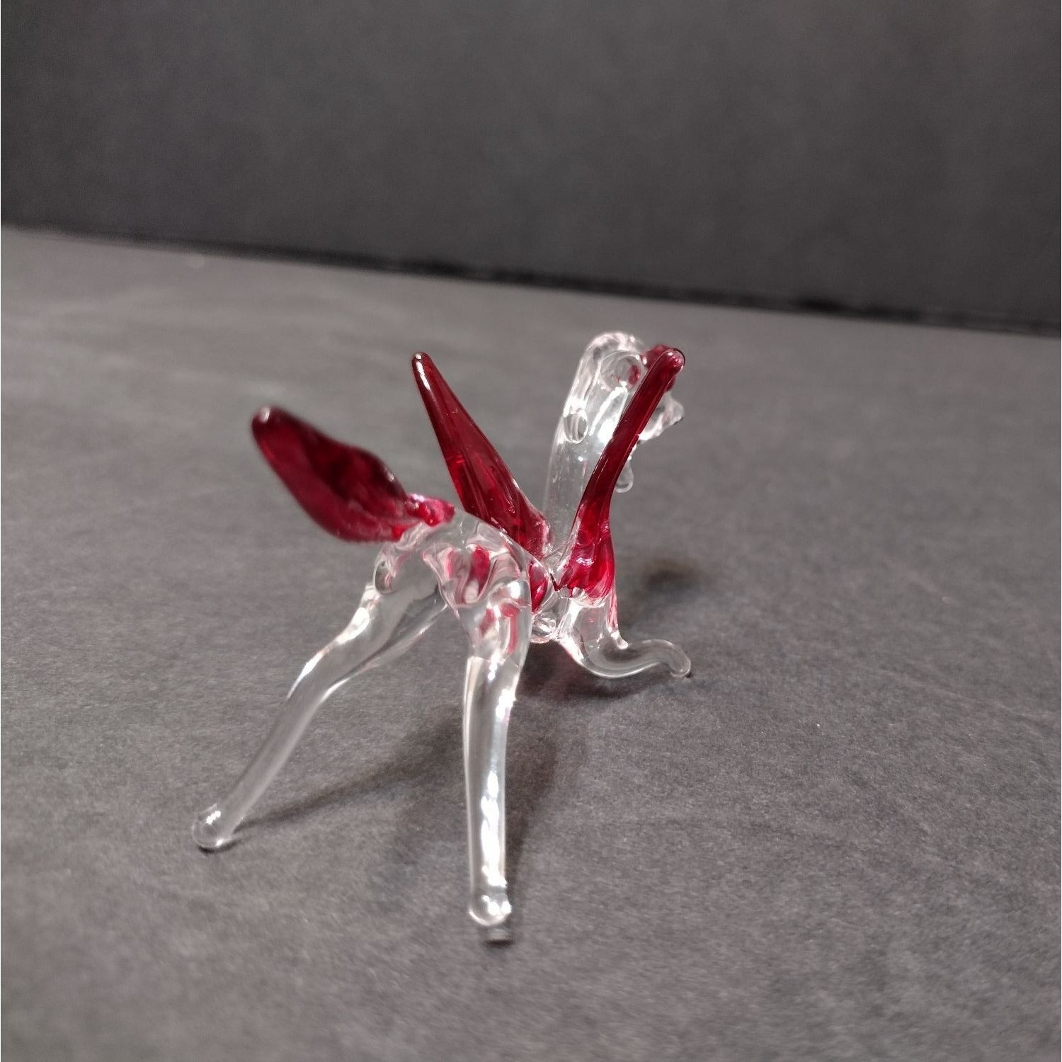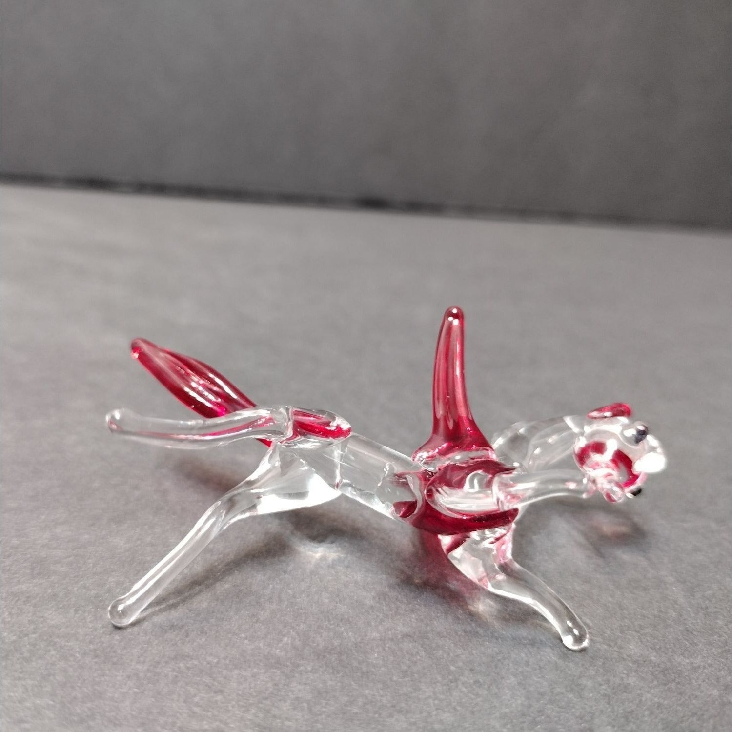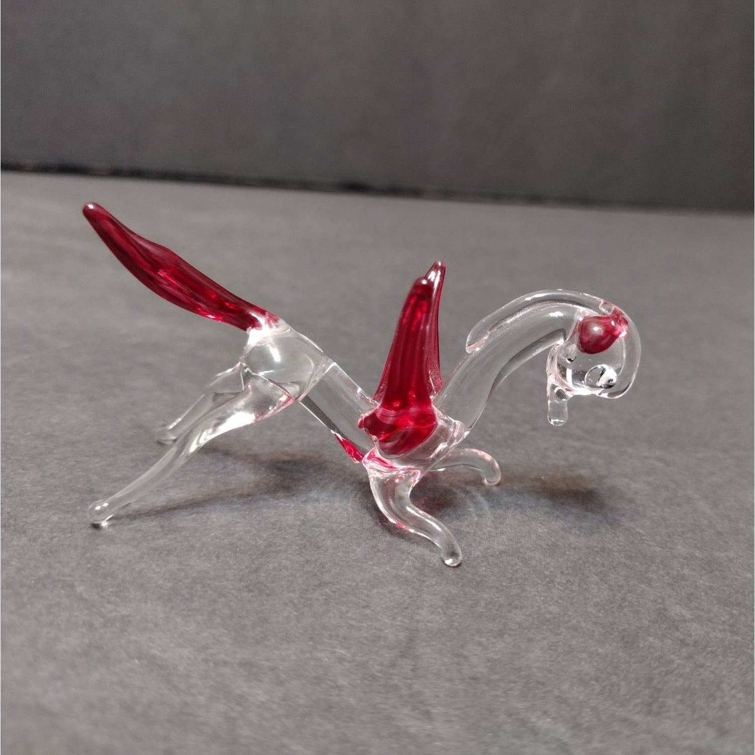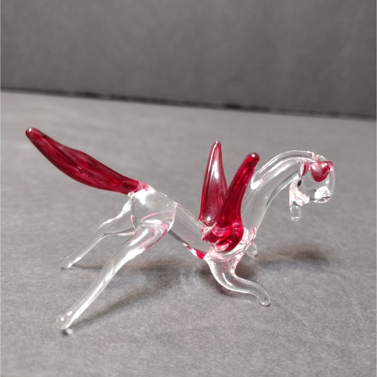 This Hand Crafted Miniature Art Glass Pegasus is a beautiful representation of a flying horse, handmade from glass in shades of pink red and clear. Lovely addition to a glass animal collection or gift.