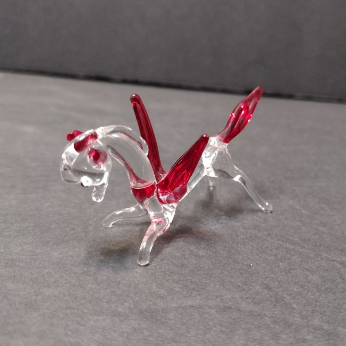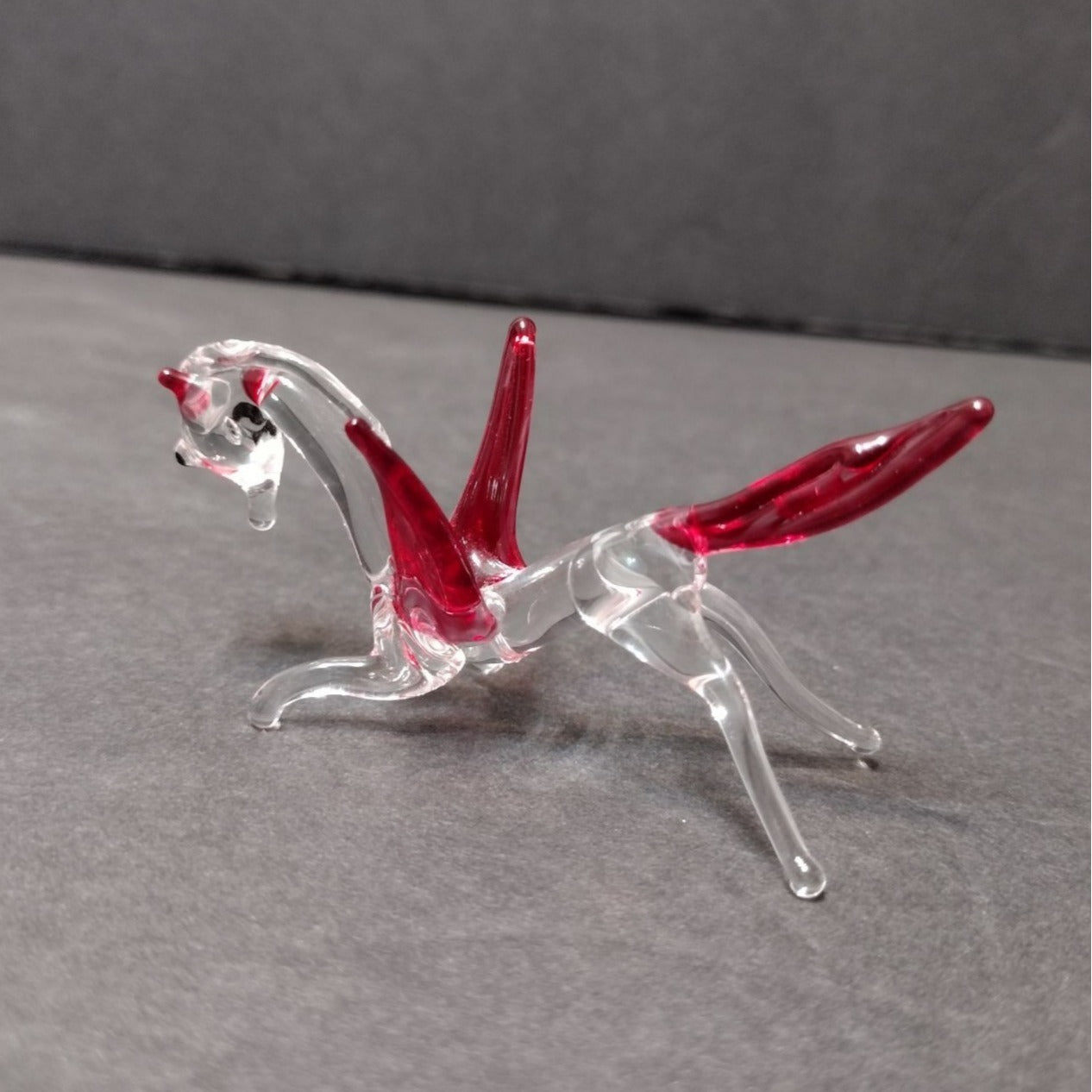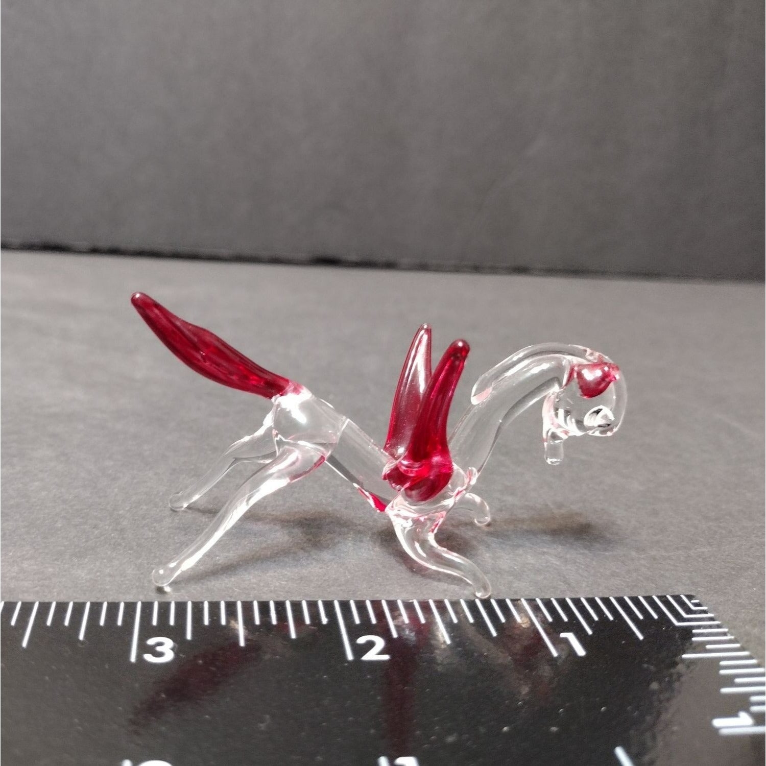 Miniature Art Glass Pegasus, Tiny Glass Animal, Flying Horse, Pink Red Clear