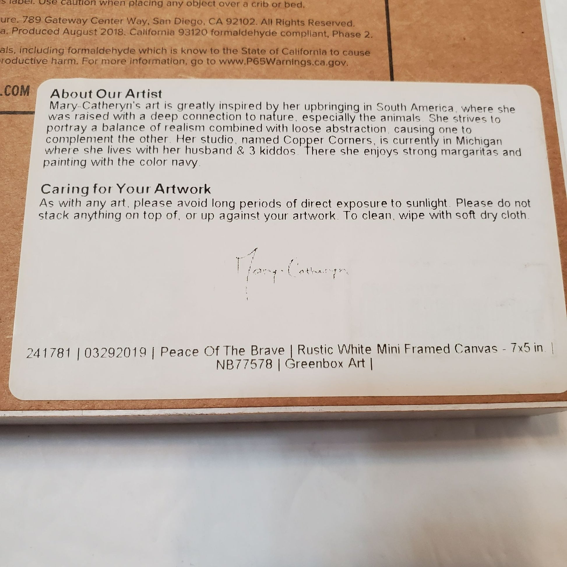 This Canvas Wall Art by Mary-Catheryn Baker is titled \"Peace of the Brave\". It is an 8x6 Rustic Framed Mini Print, which adds a touch of rustic charm to any space. The horse art is a perfect addition for farmhouse, country and horse lovers.