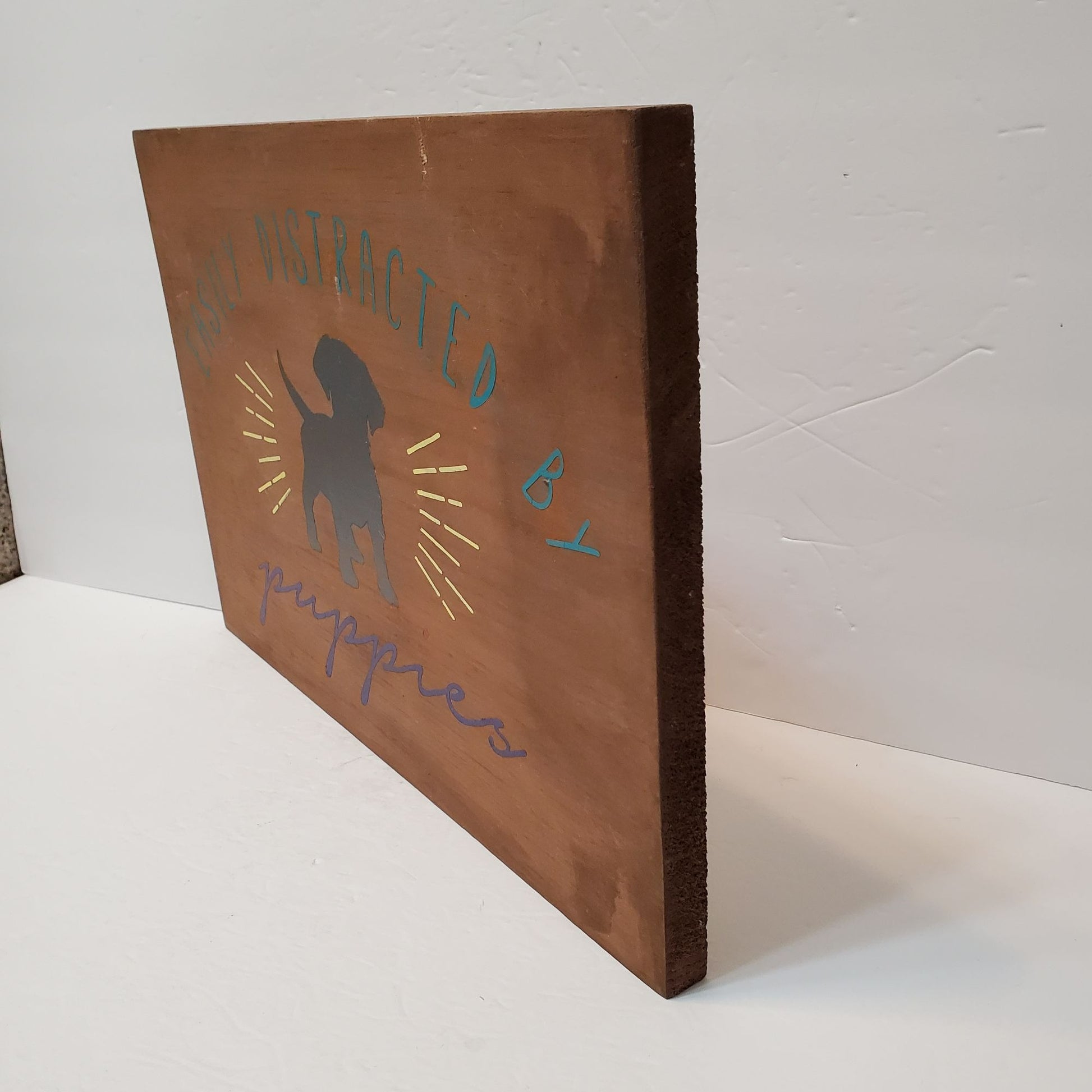 Rustic Wooden Wall Art Easily Distracted By Puppies Sign 16x11 Dog Lovers Decor
