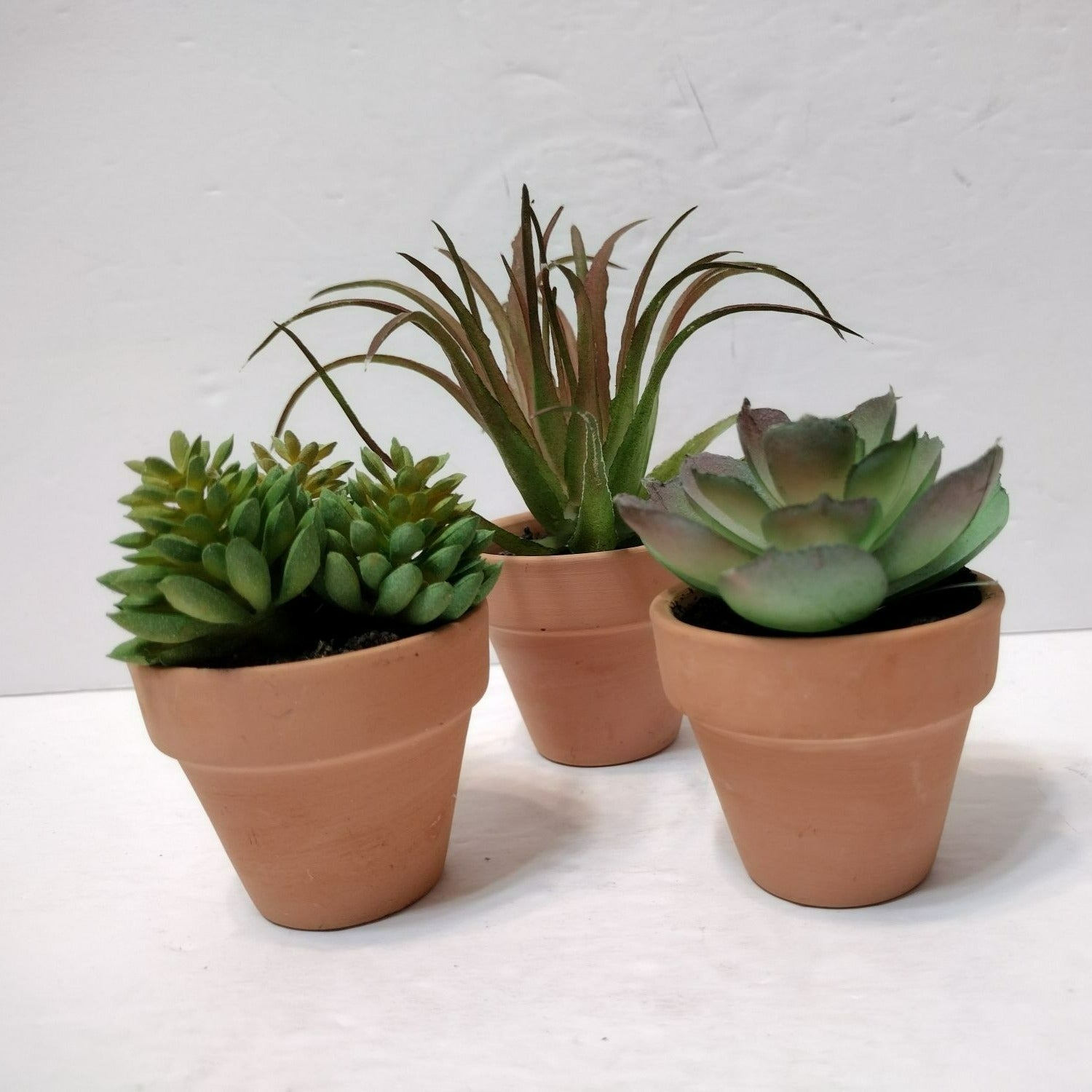Set of 3 Faux Succulents in Terra Cotta Planters, Fake Houseplant Greenery Decor