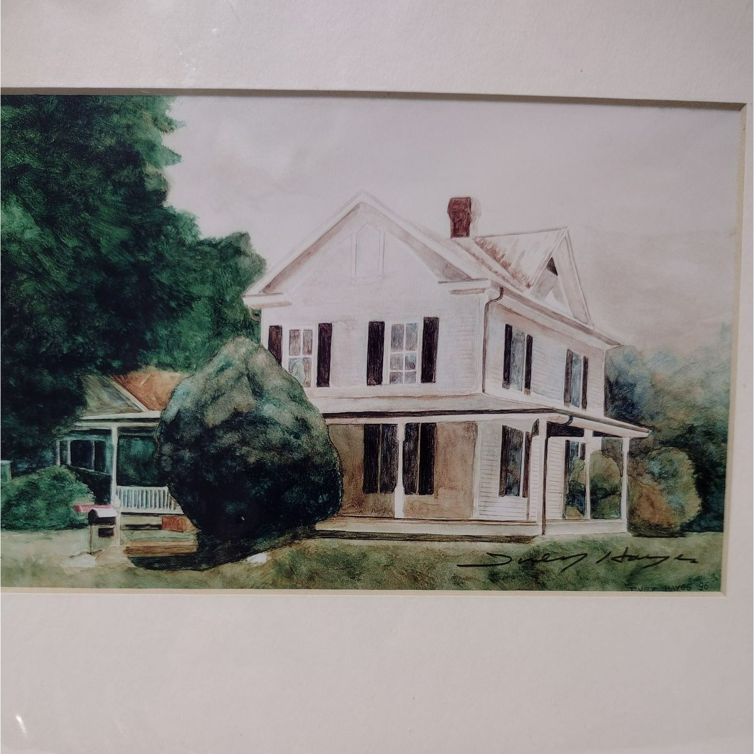 Still in the original protective cover, in New condition, never been framed or displayed. This is a lithograph print which has a personal second signature by Ivey Hayes on top of the print. The image is a painting of a farmhouse in Swansboro North Carolina, on the coast north of Wilmington.