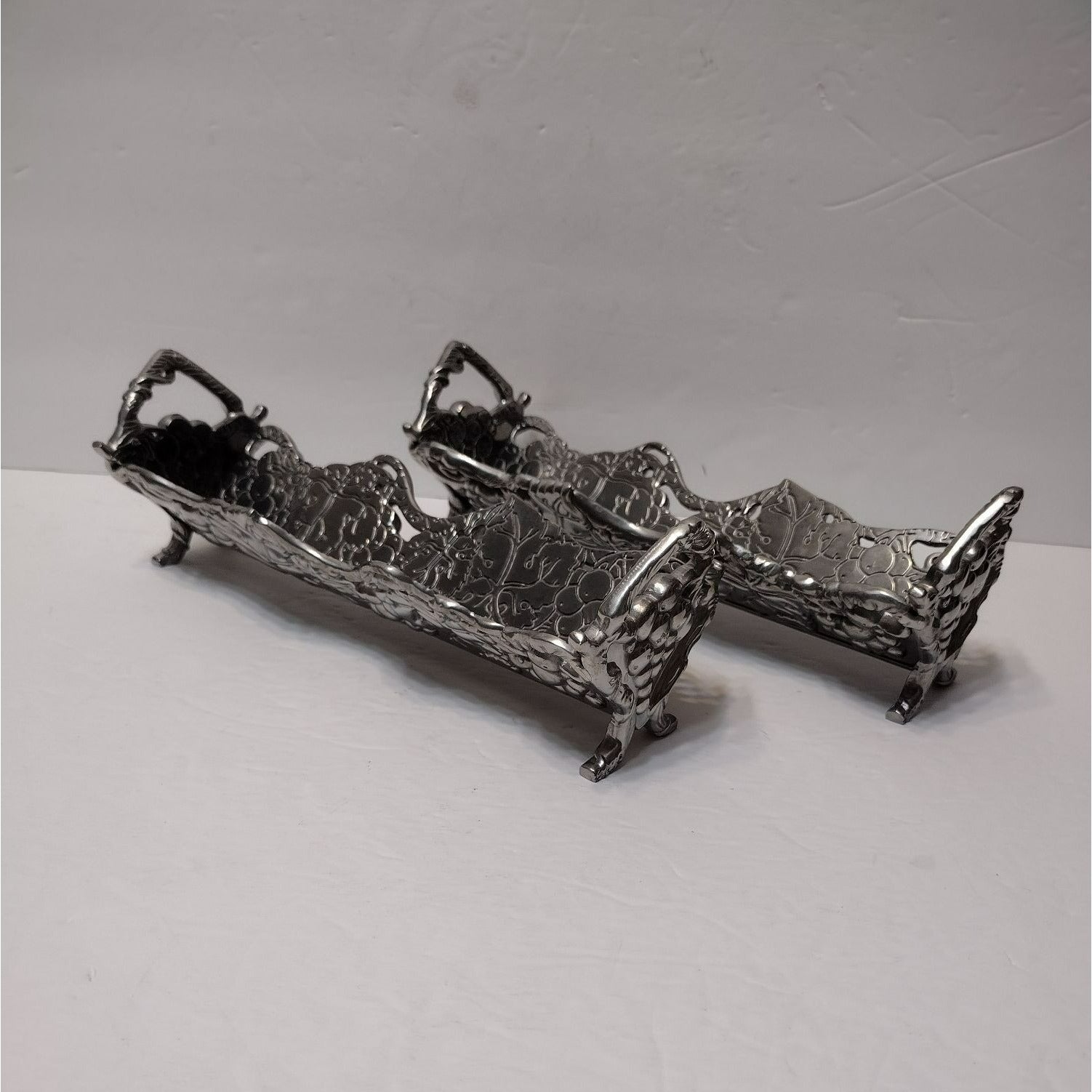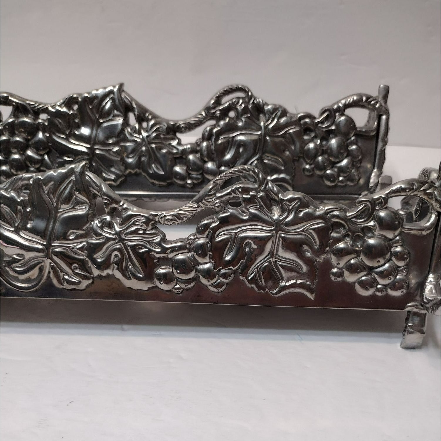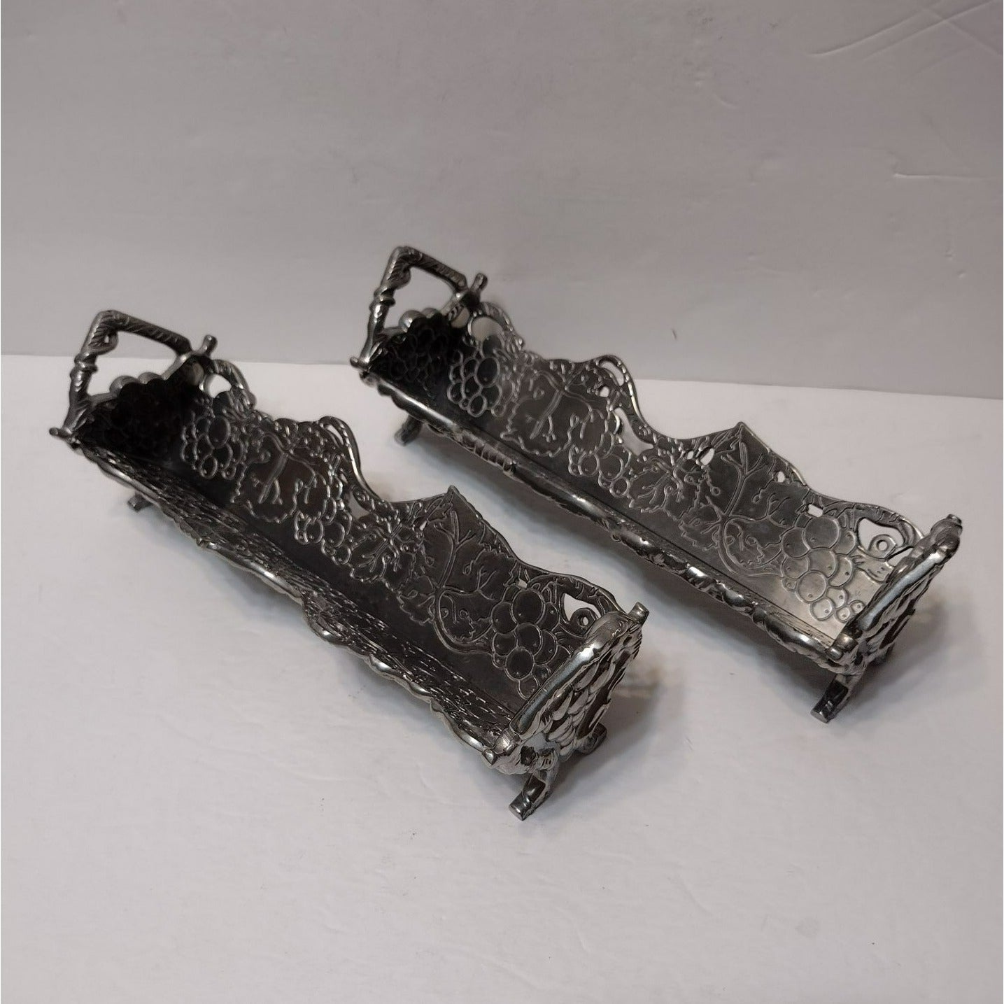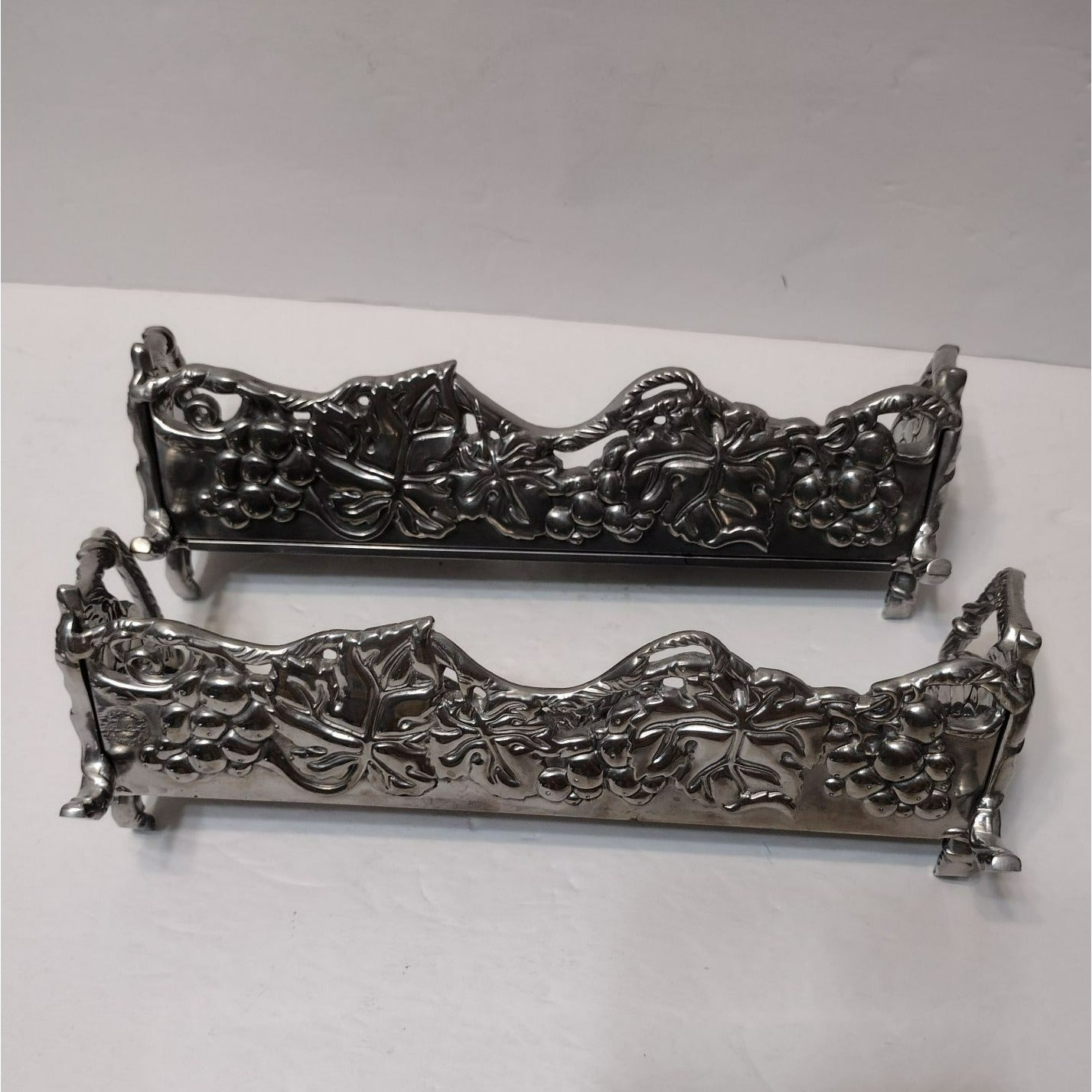 Vintage Arthur Court Cracker Tray, Set of 2, 2002 Grape Vines Aluminum Footed
