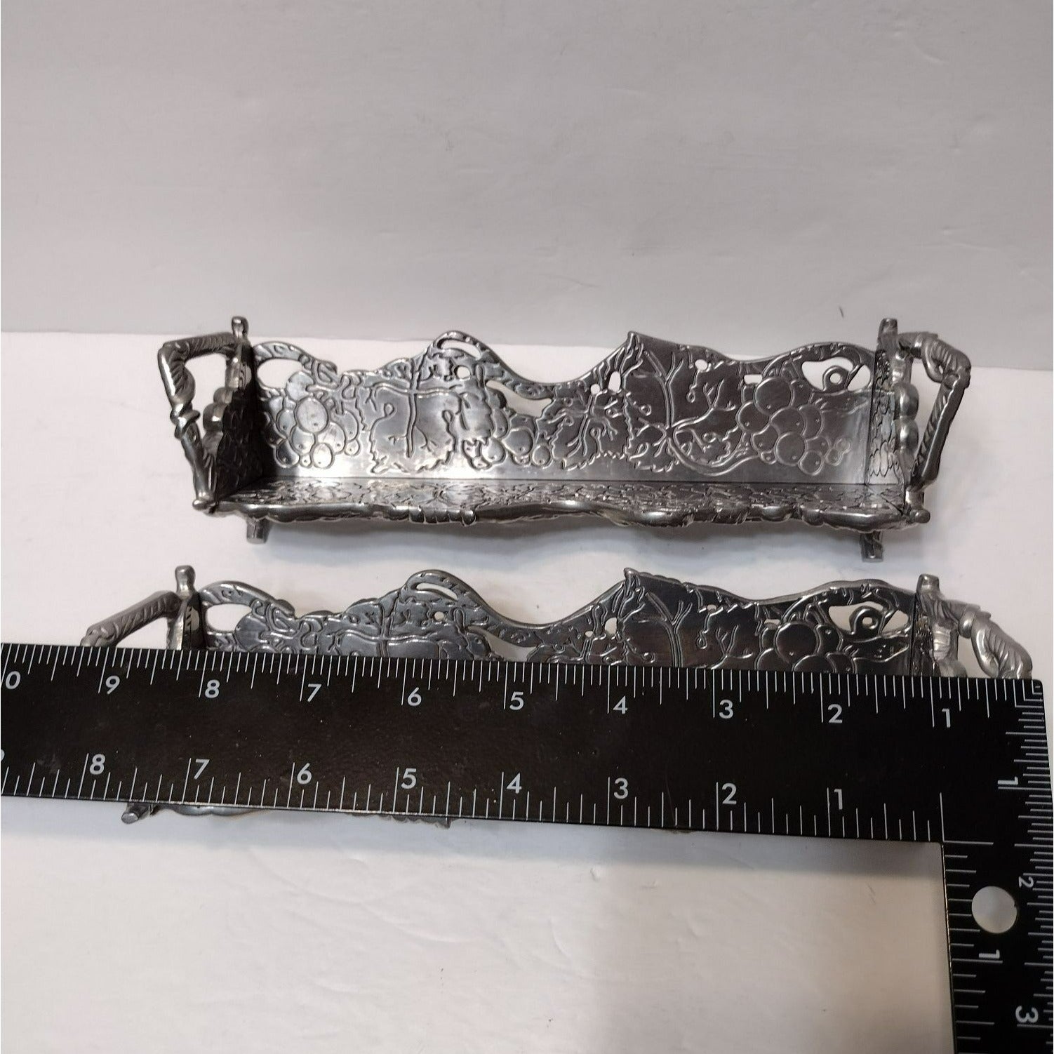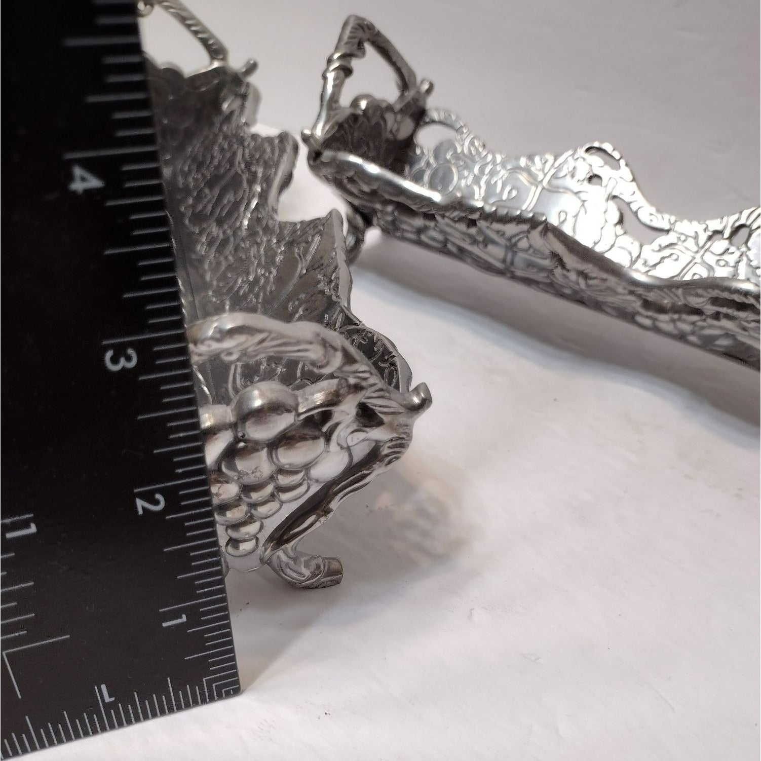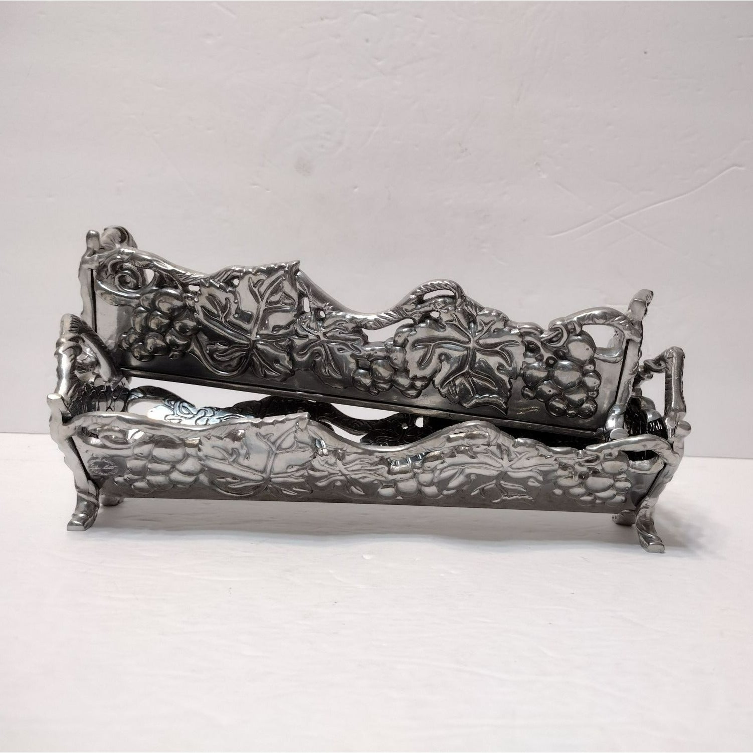 • Vintage, Hand Crafted, Metal, Grapes Decor, Silver Tray