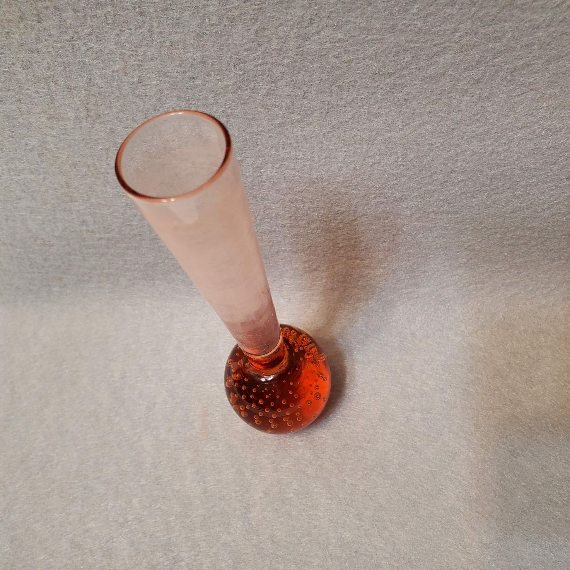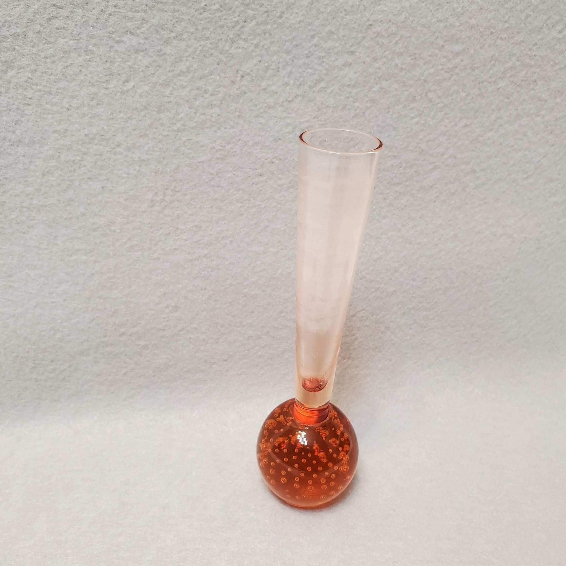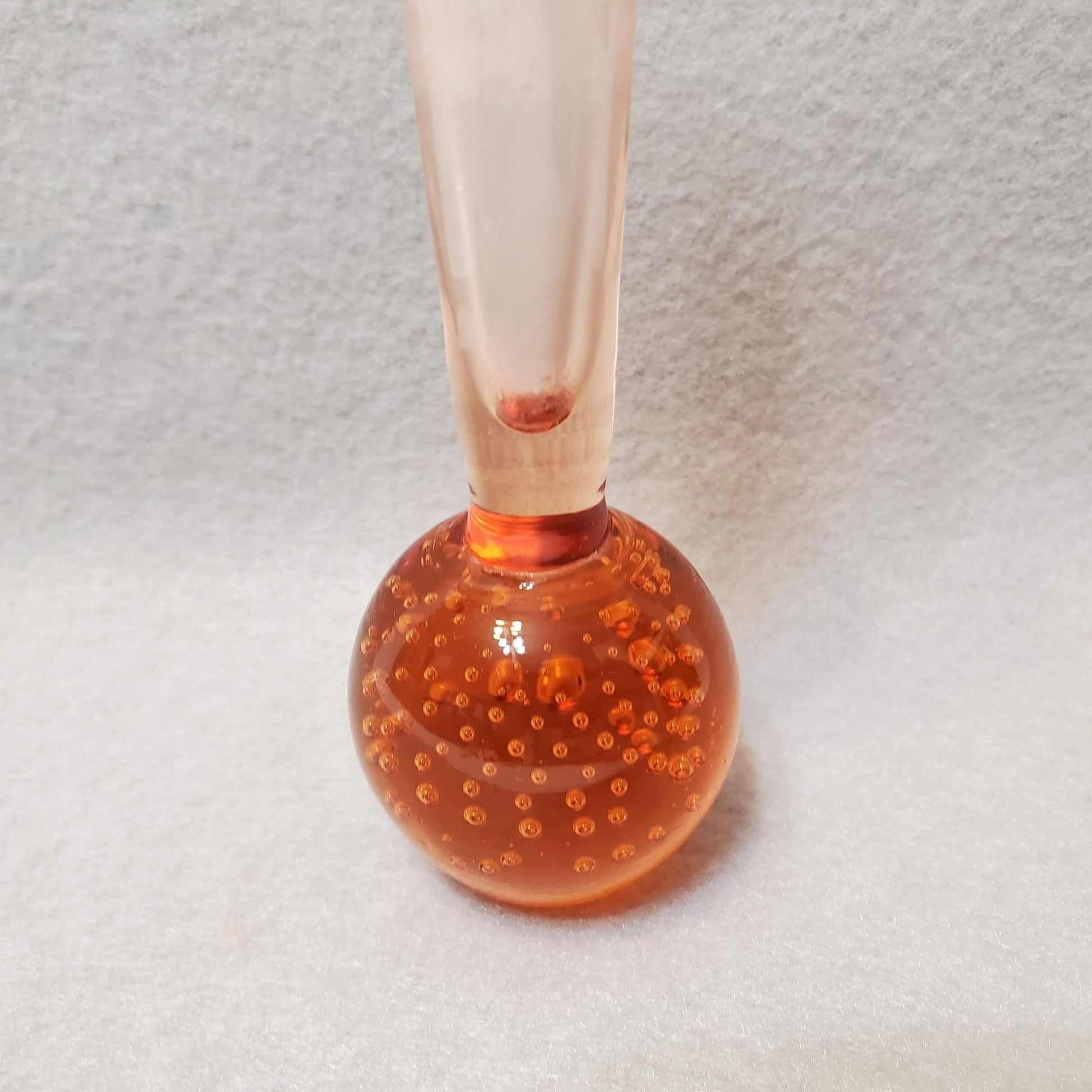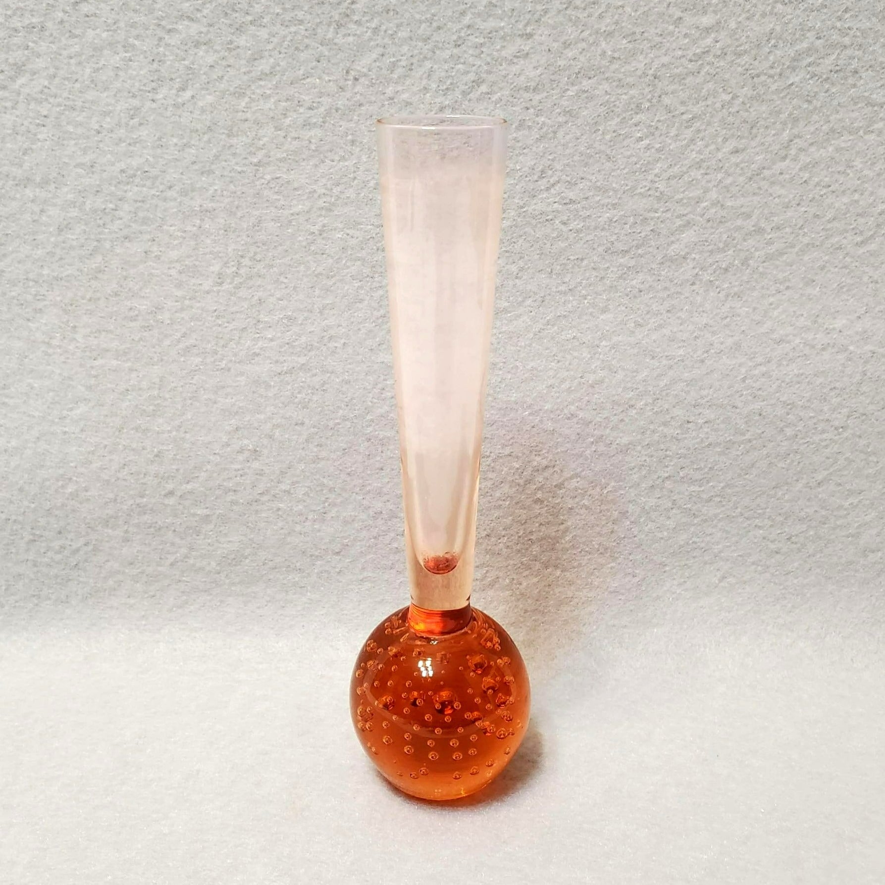 Vintage Ball Bottom Bud Vase Hand Blown Glass Controlled Bubble Bullicante Amber