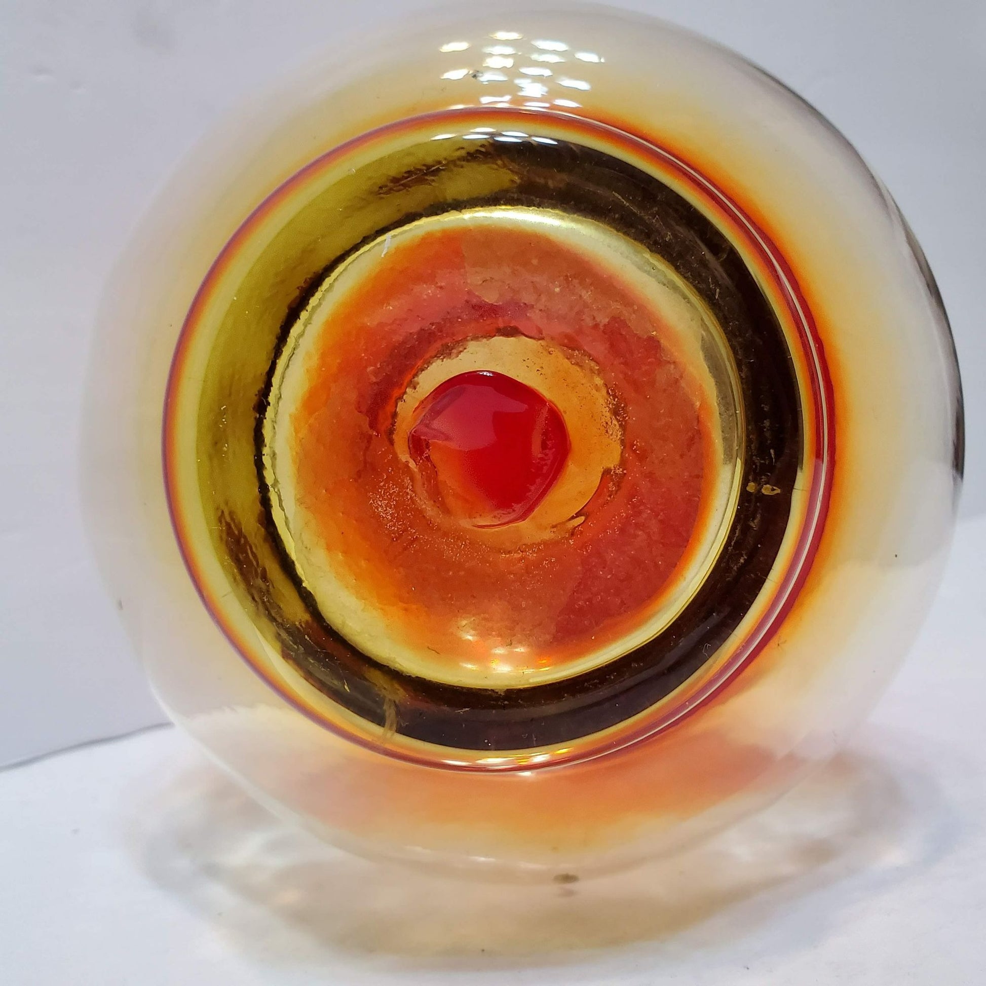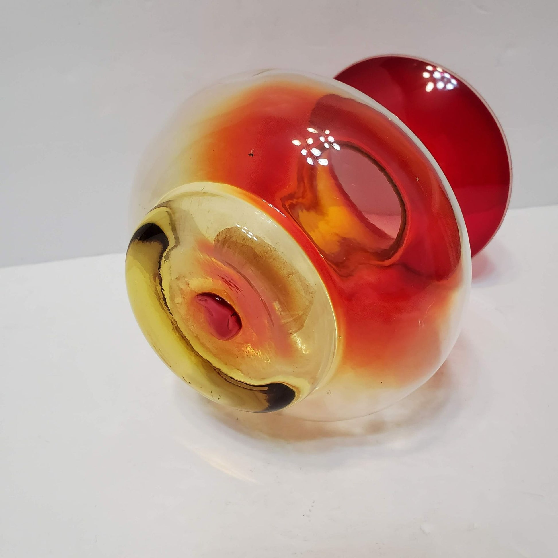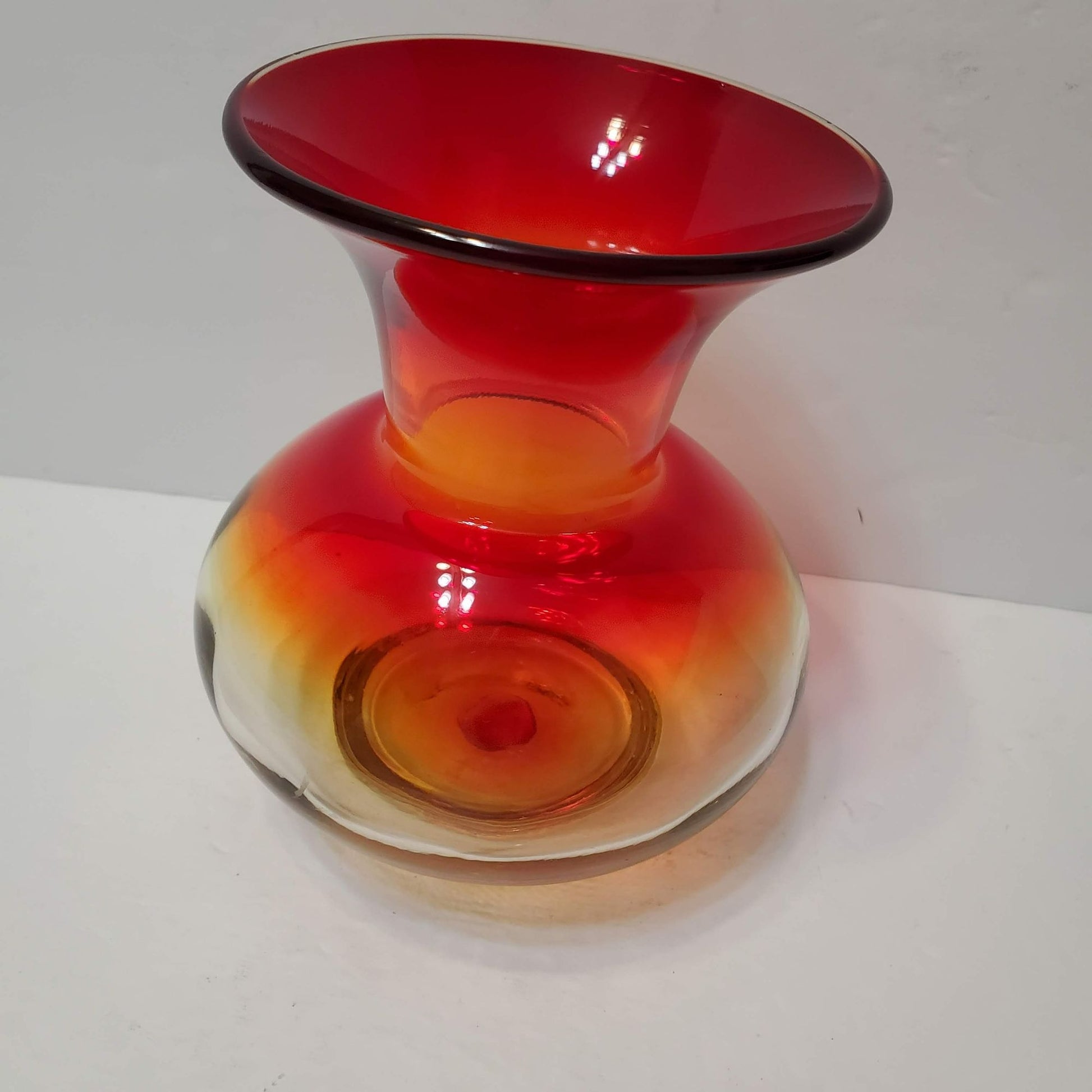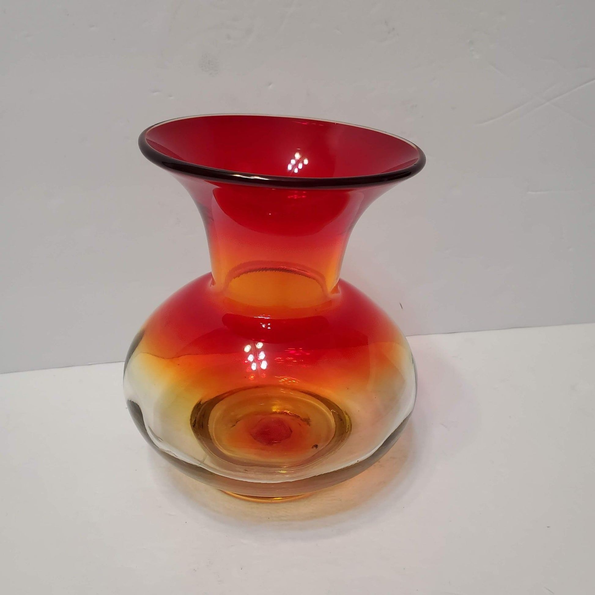 Vintage Blenko Art Glass Hand Blown Amberina Vase, 6" Tall Bulbous Orange Yellow