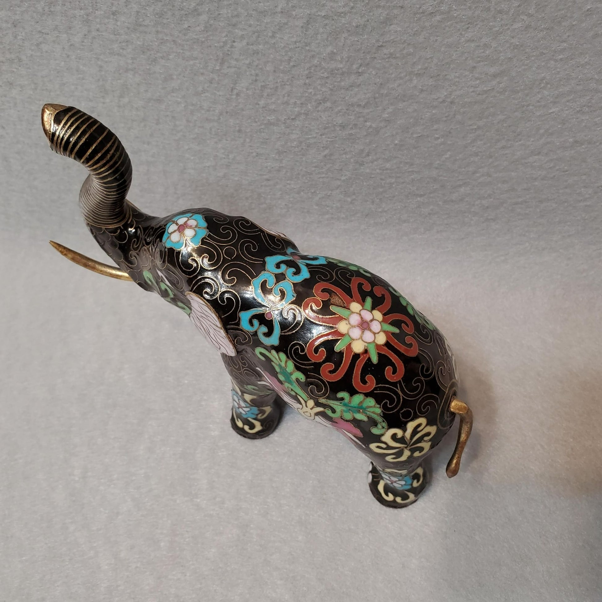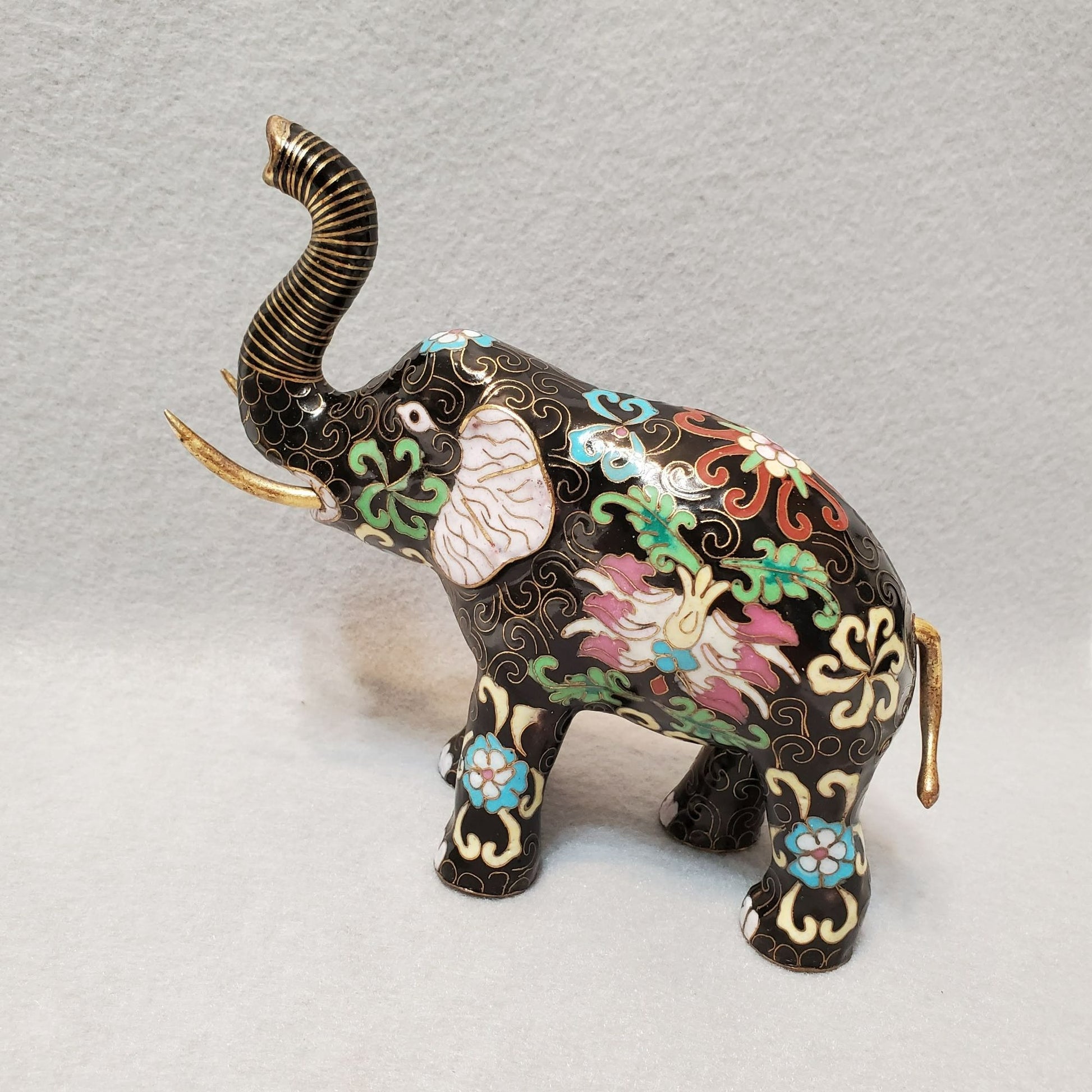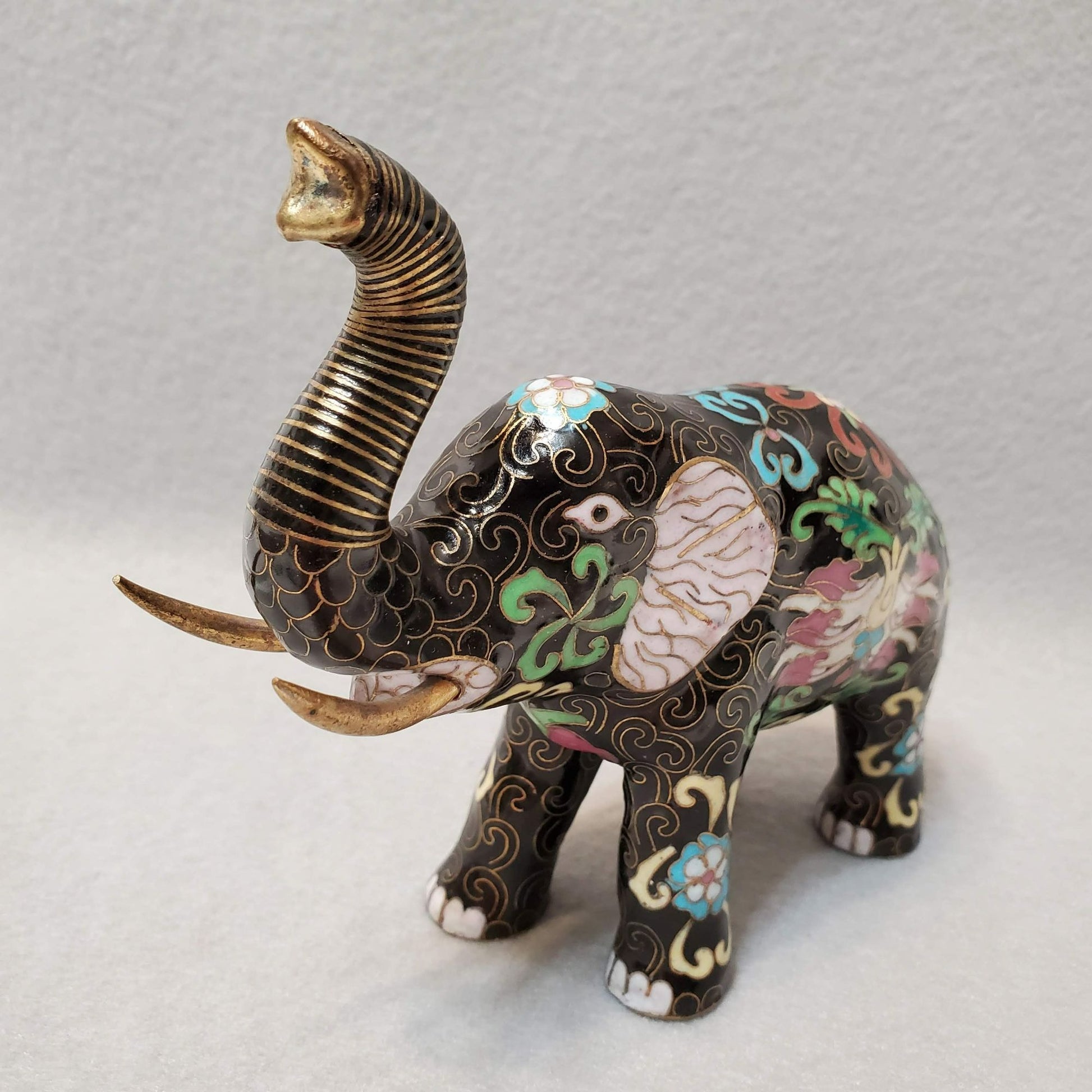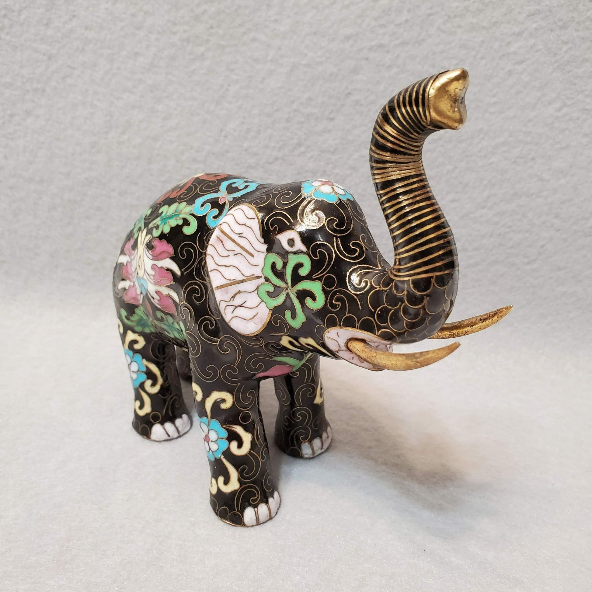 Vintage Cloisonne Elephant Figurine, Enamel, Upraised Trunk Up, Good Luck Statue