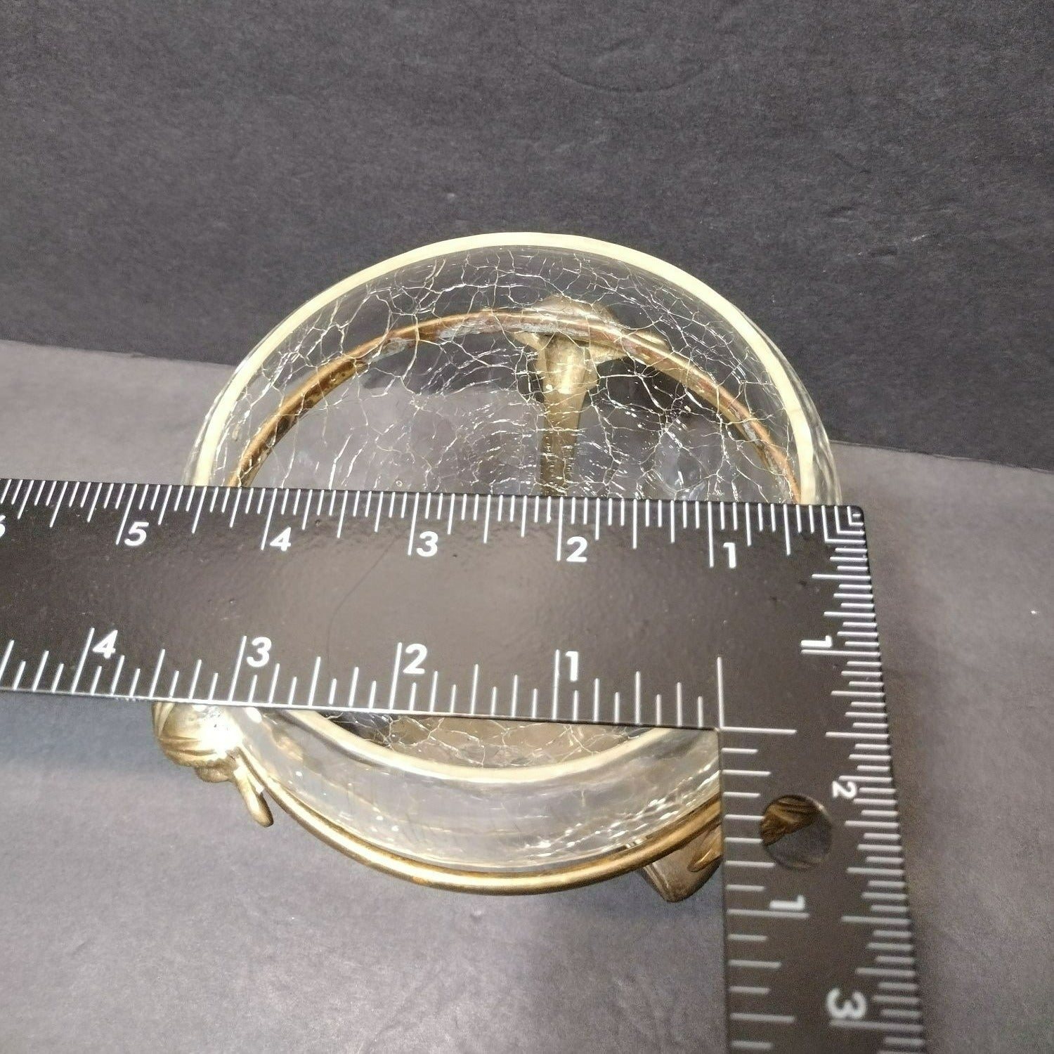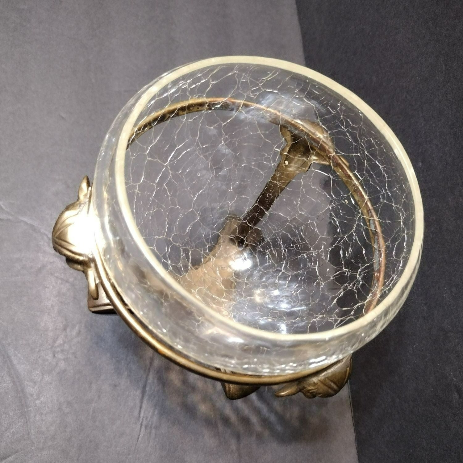 In excellent vintage condition. No chips or cracks to the bowl (the "crackle" finish is intentional and part of the manufacture process). The brass stand has some patina consistent with age.