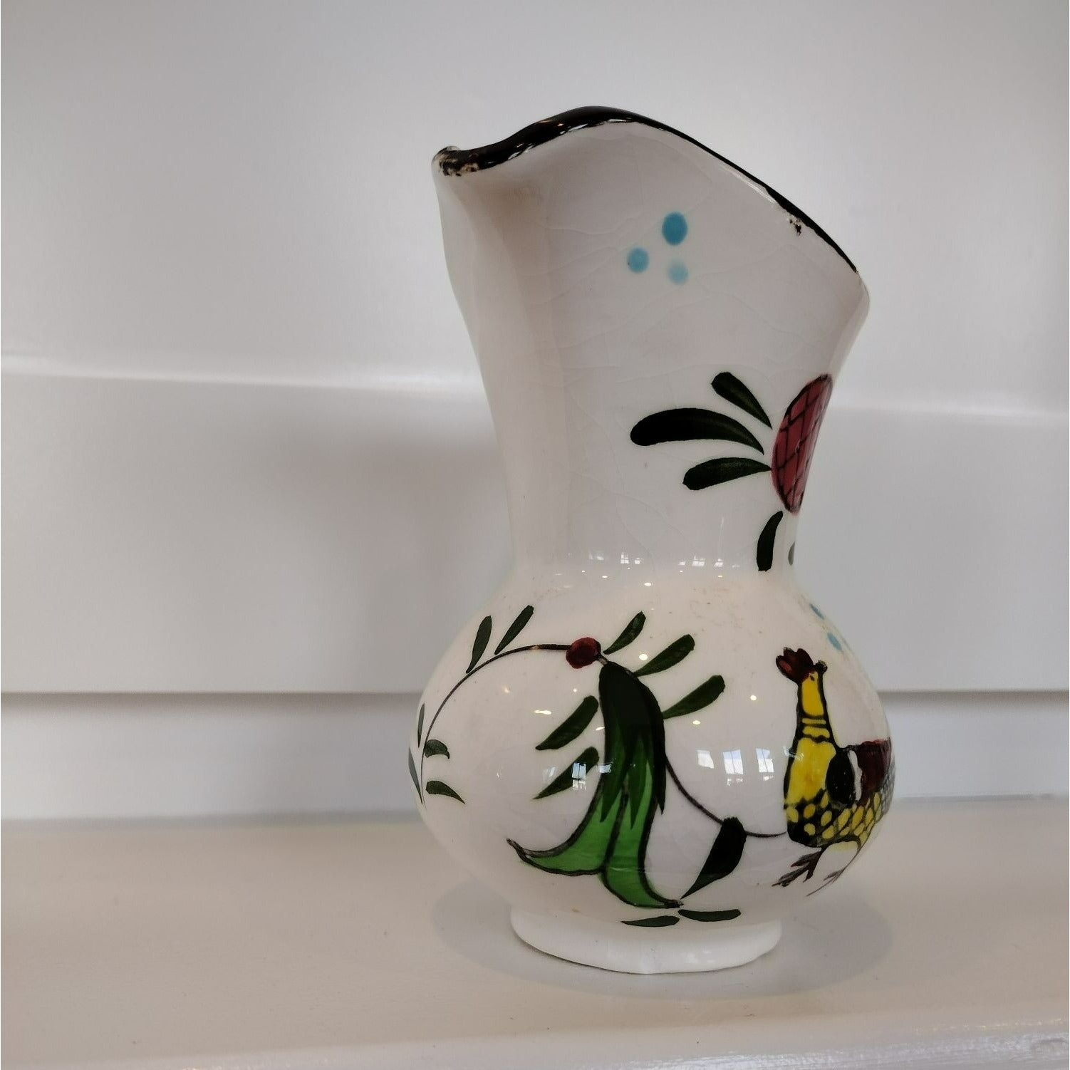 Vintage Italian Pottery Creamer with Hand Painted Rooster design