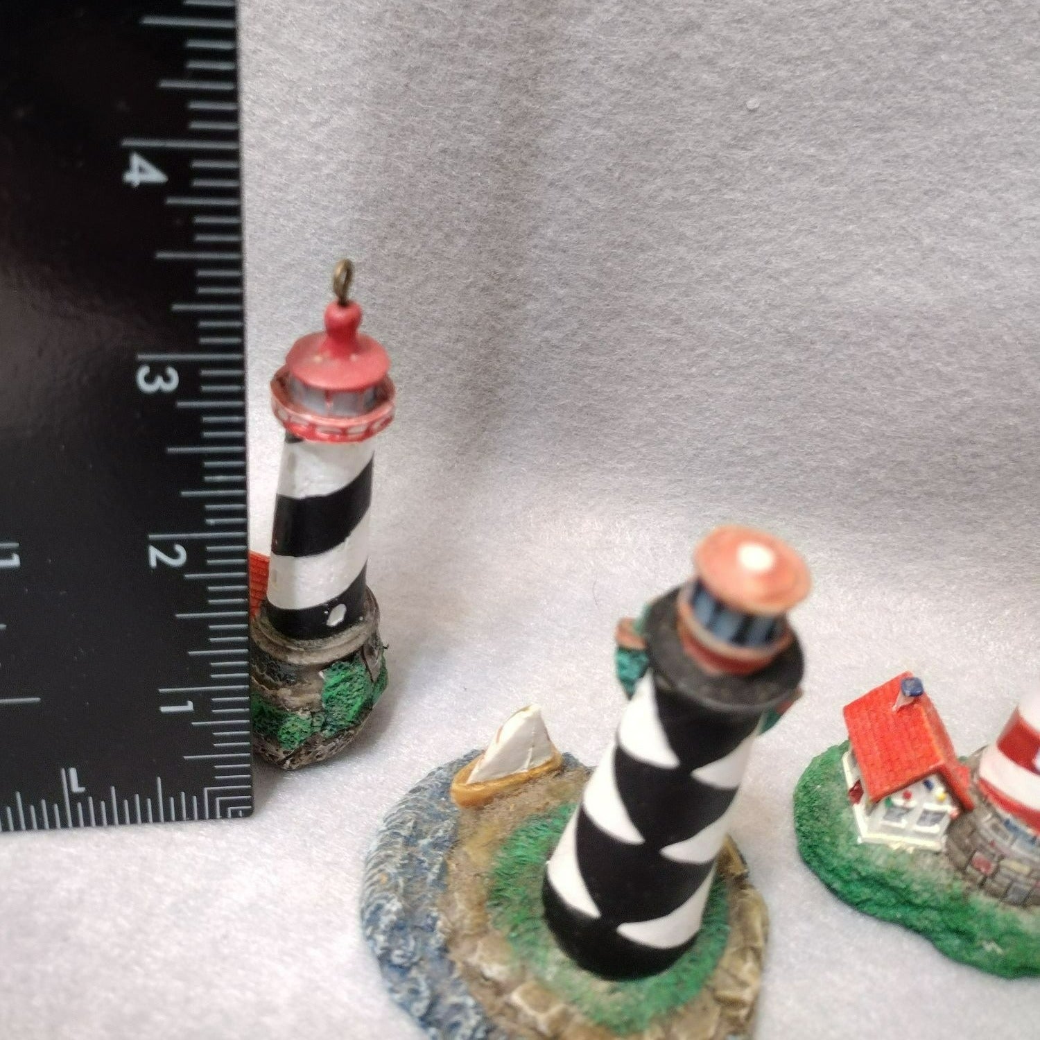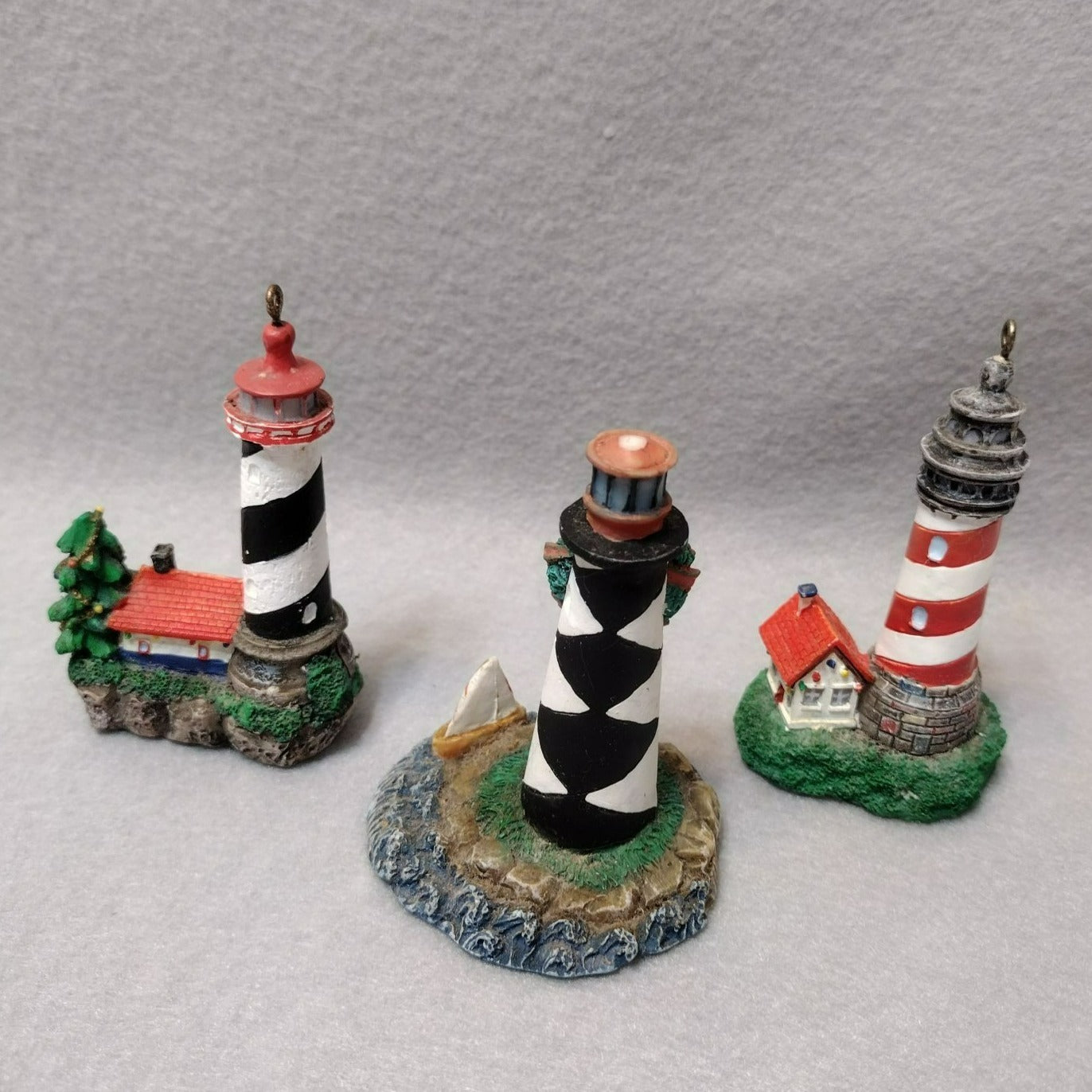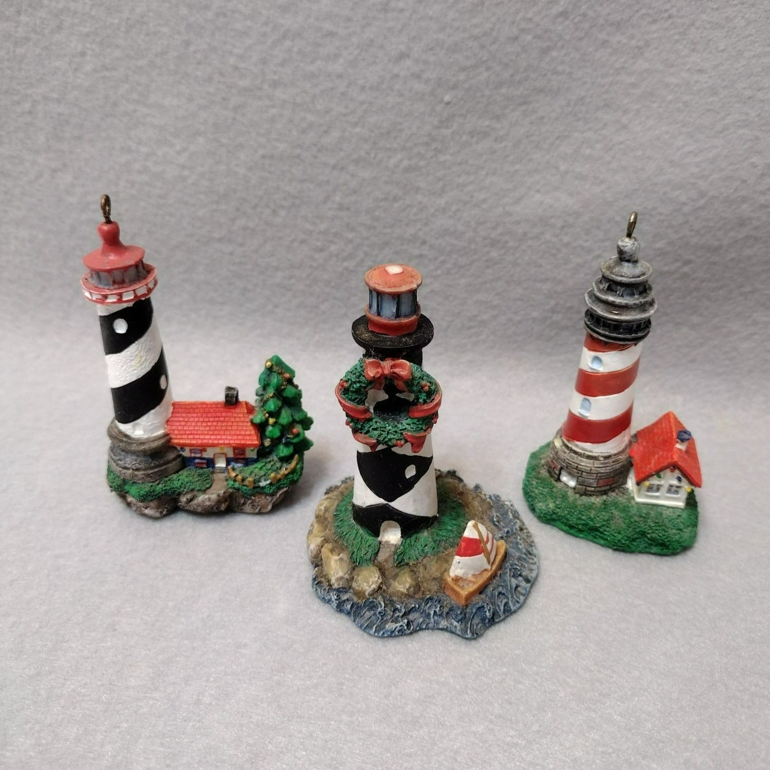 Vintage Lighthouse Ornaments, Set of 3, Resin Light Houses, Coastal Christmas
