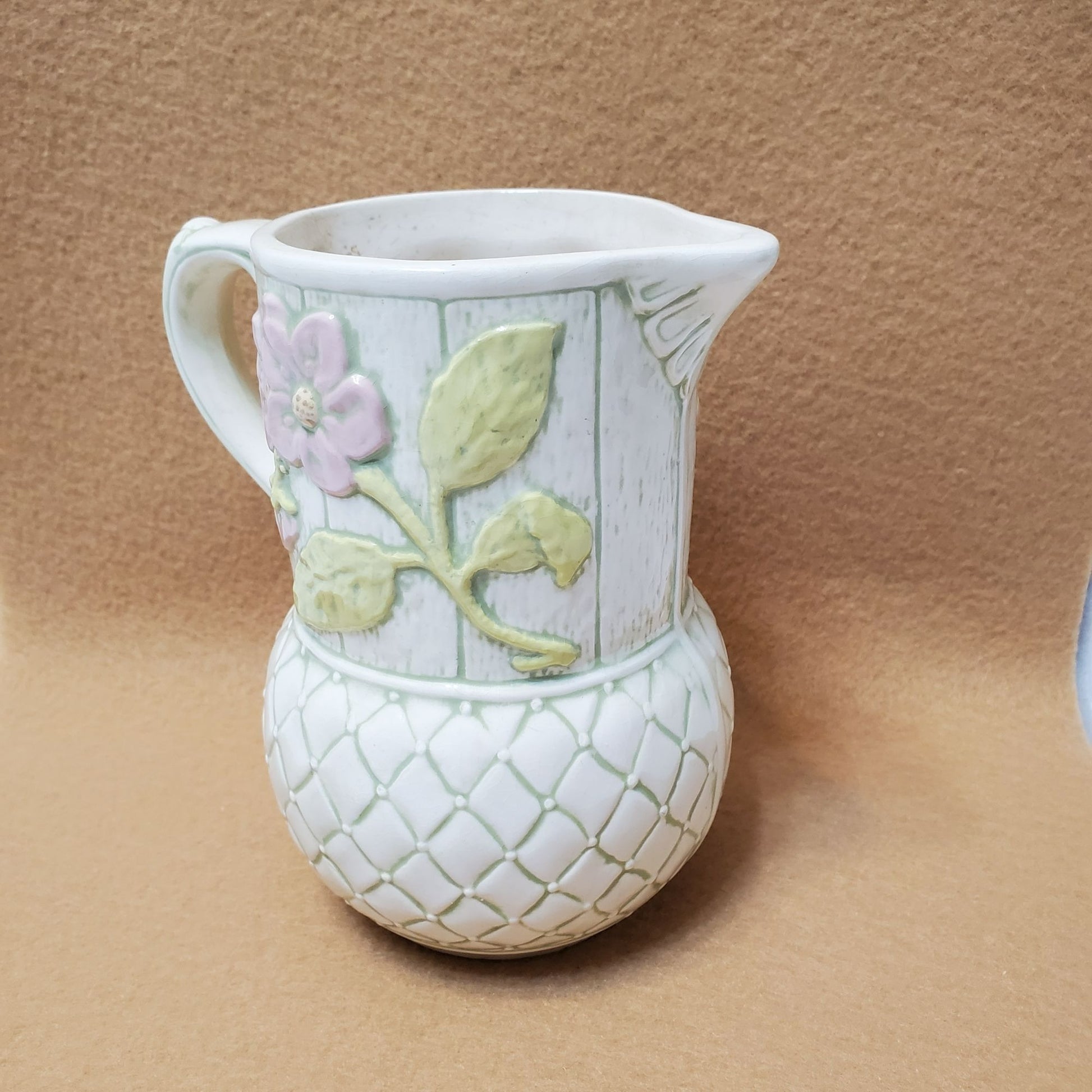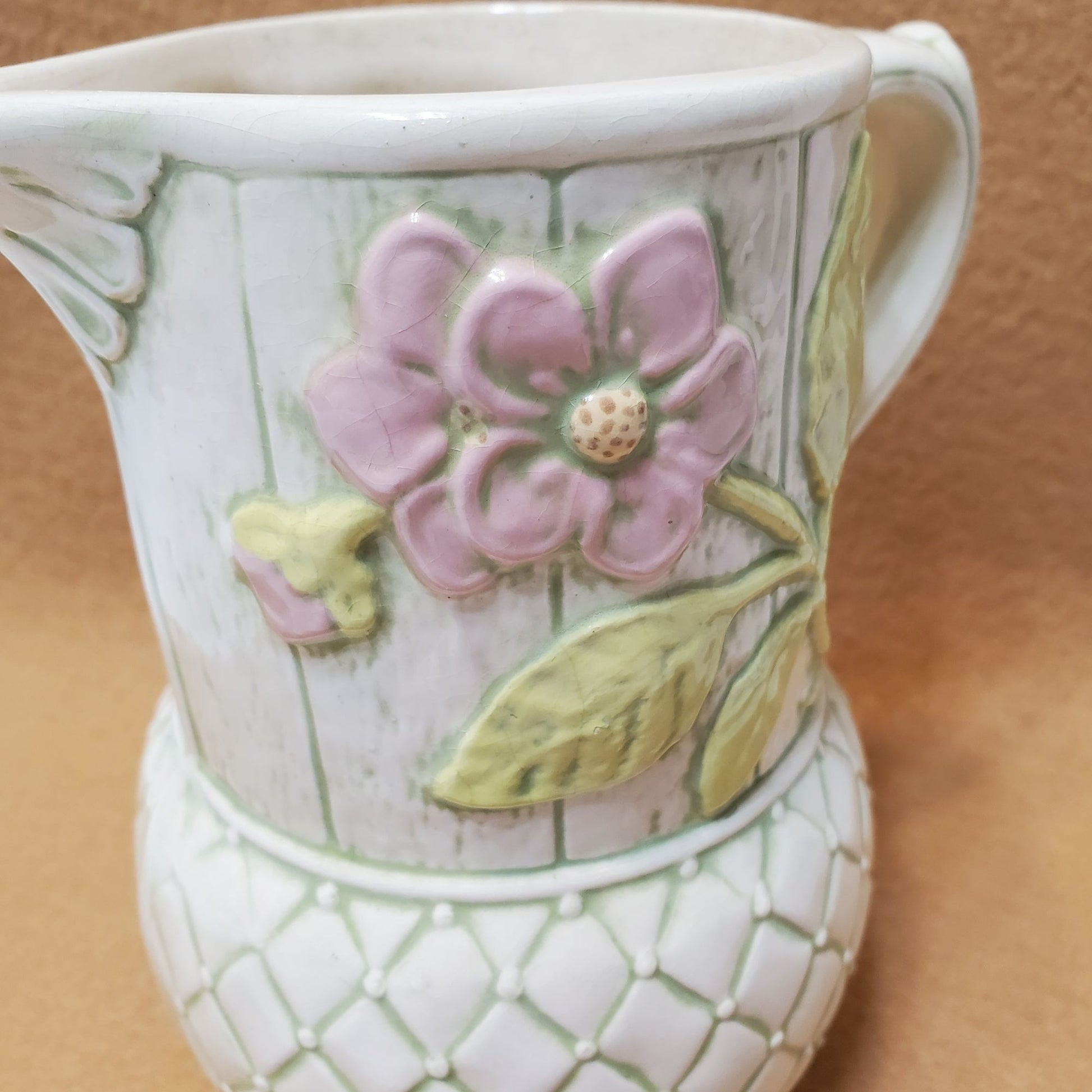 • Ceramic, Vintage, Floral, Majolica Pitcher, Majolica Pottery