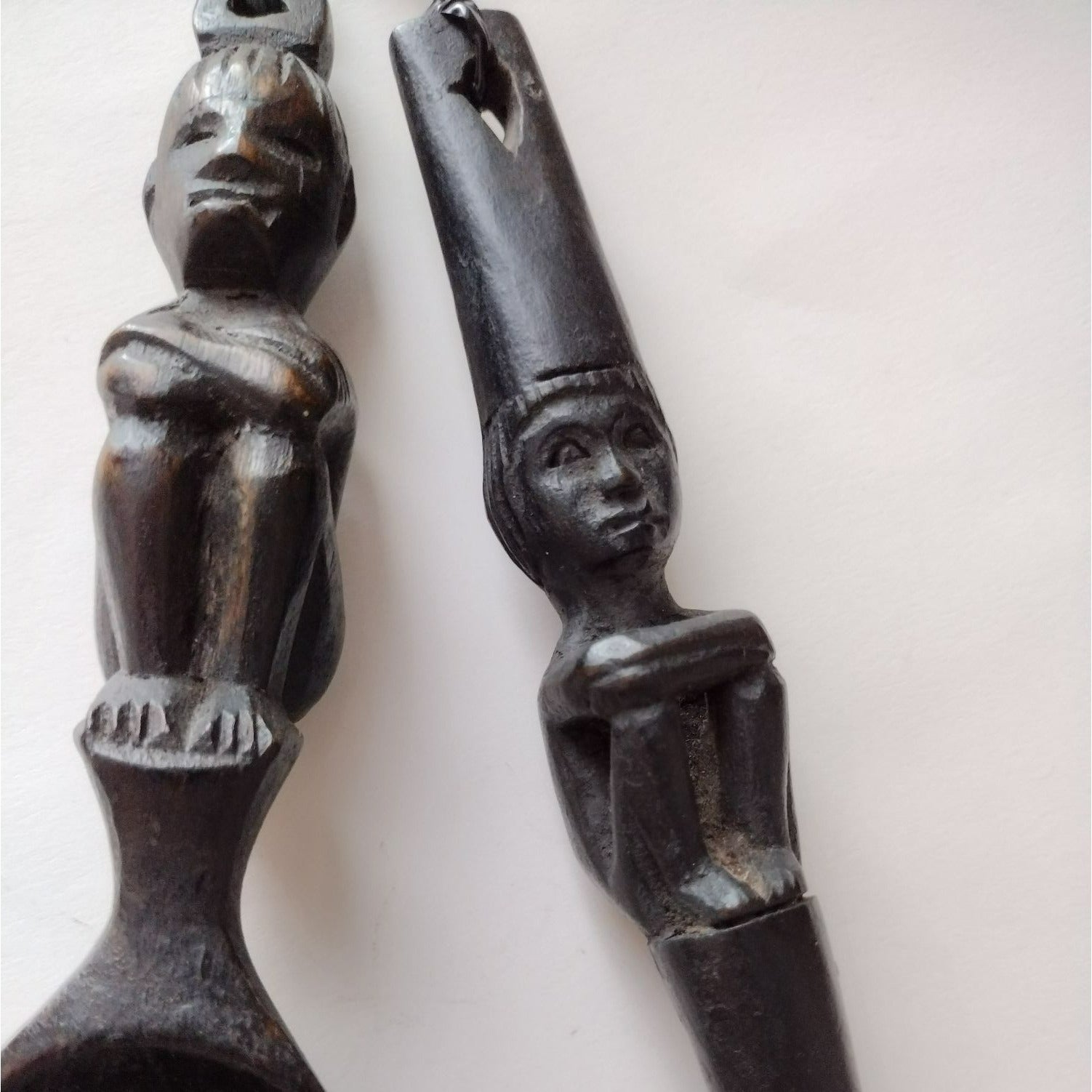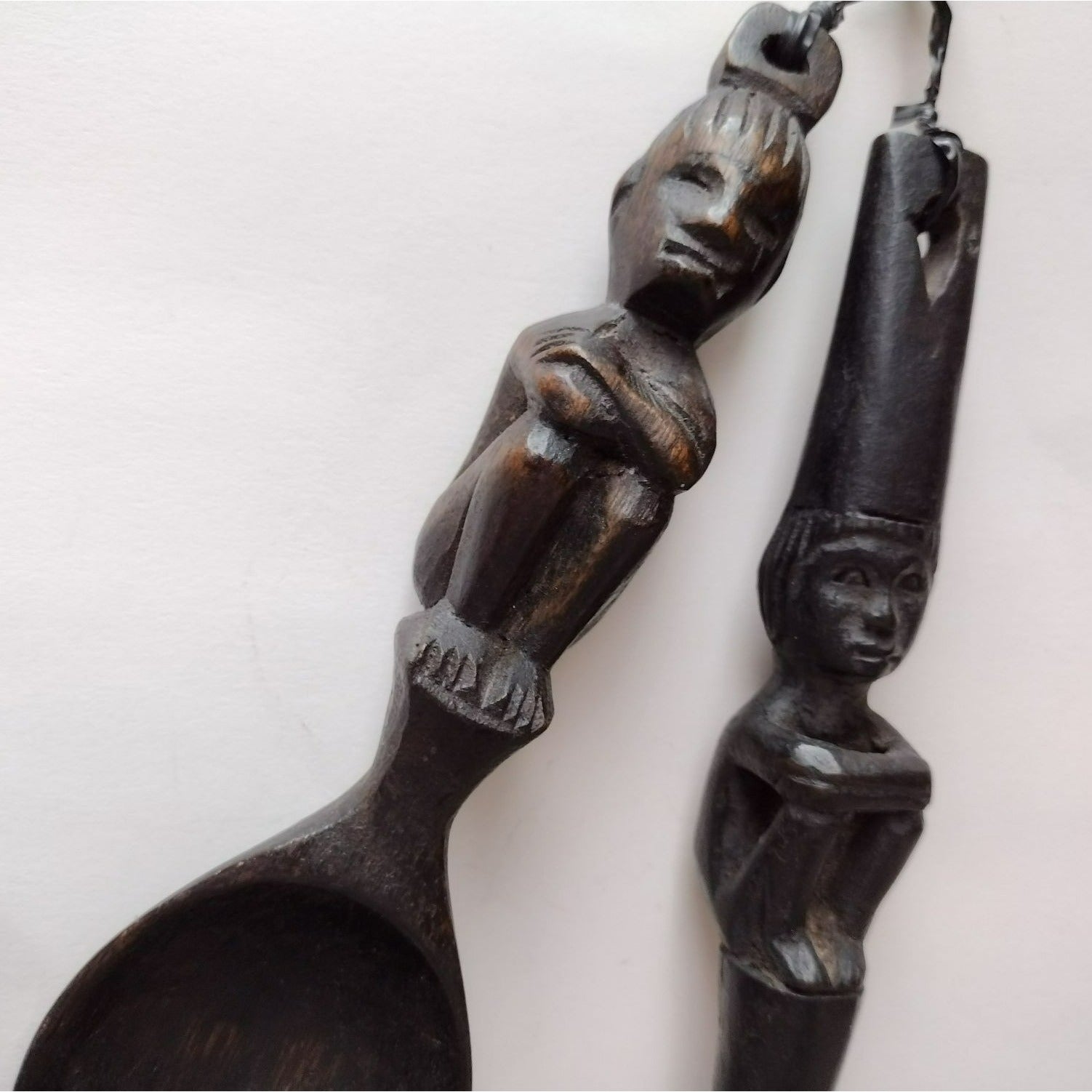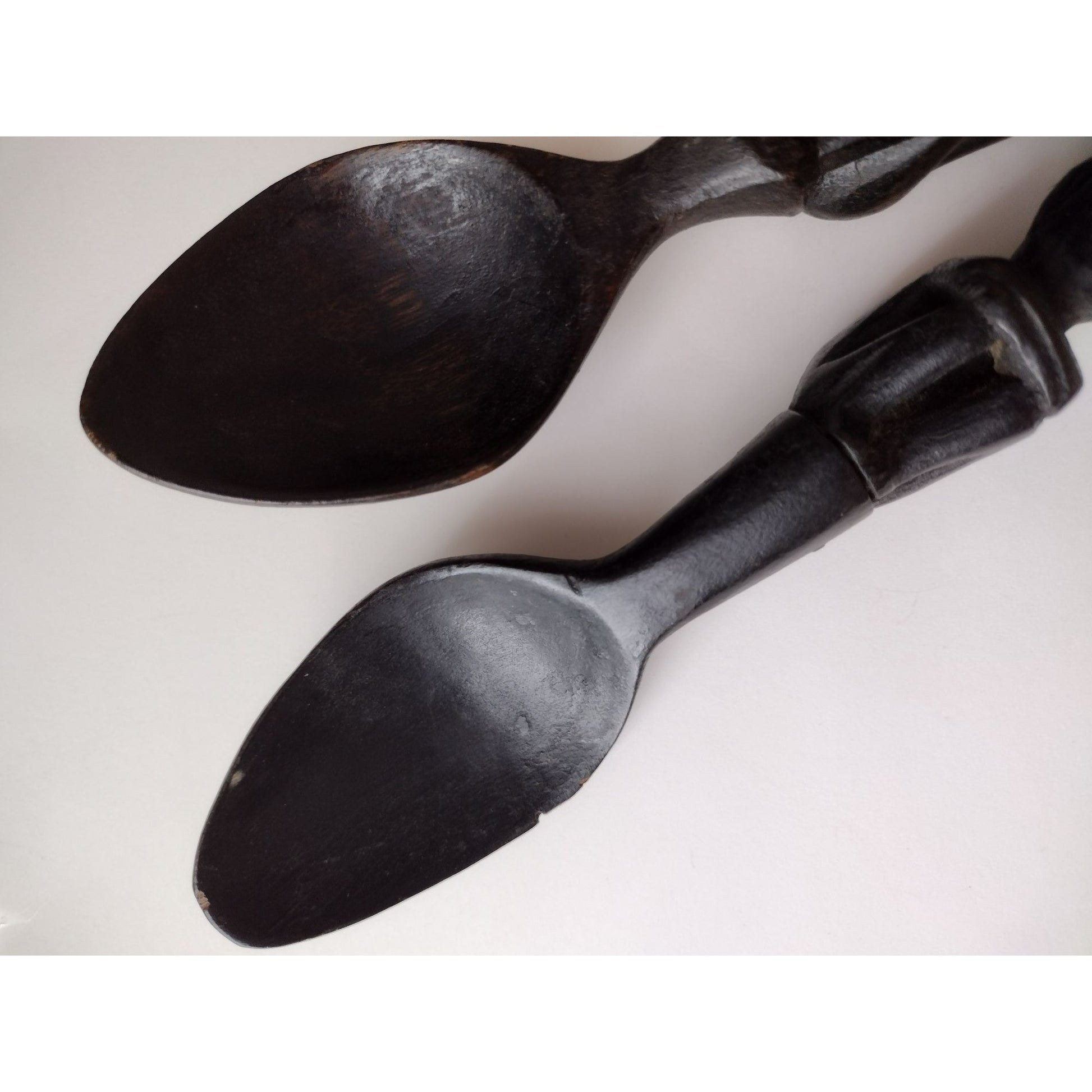 Vintage Philippine Ifugao Wooden Rice Spoons Set of 2 Tribal Carved Wood Figural
