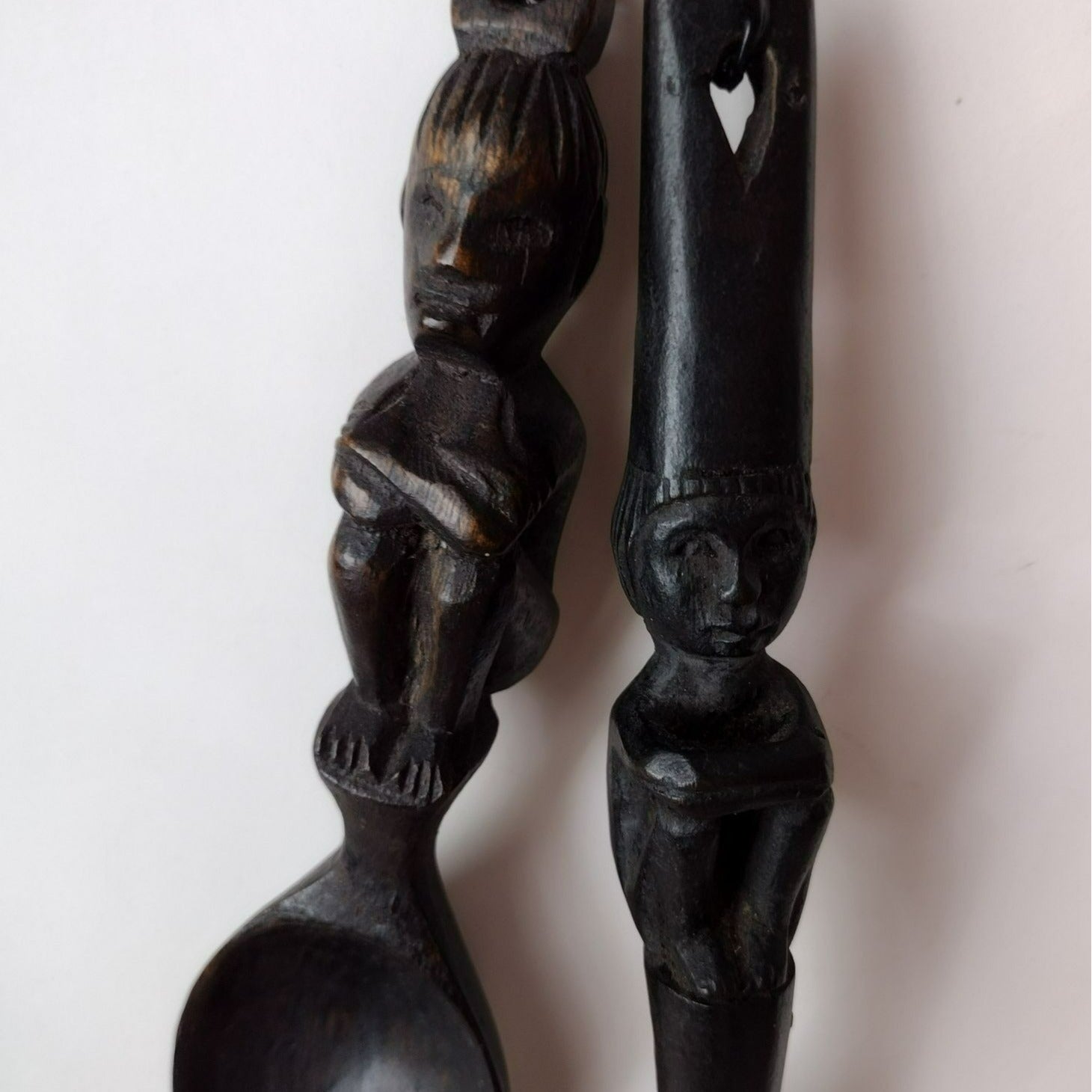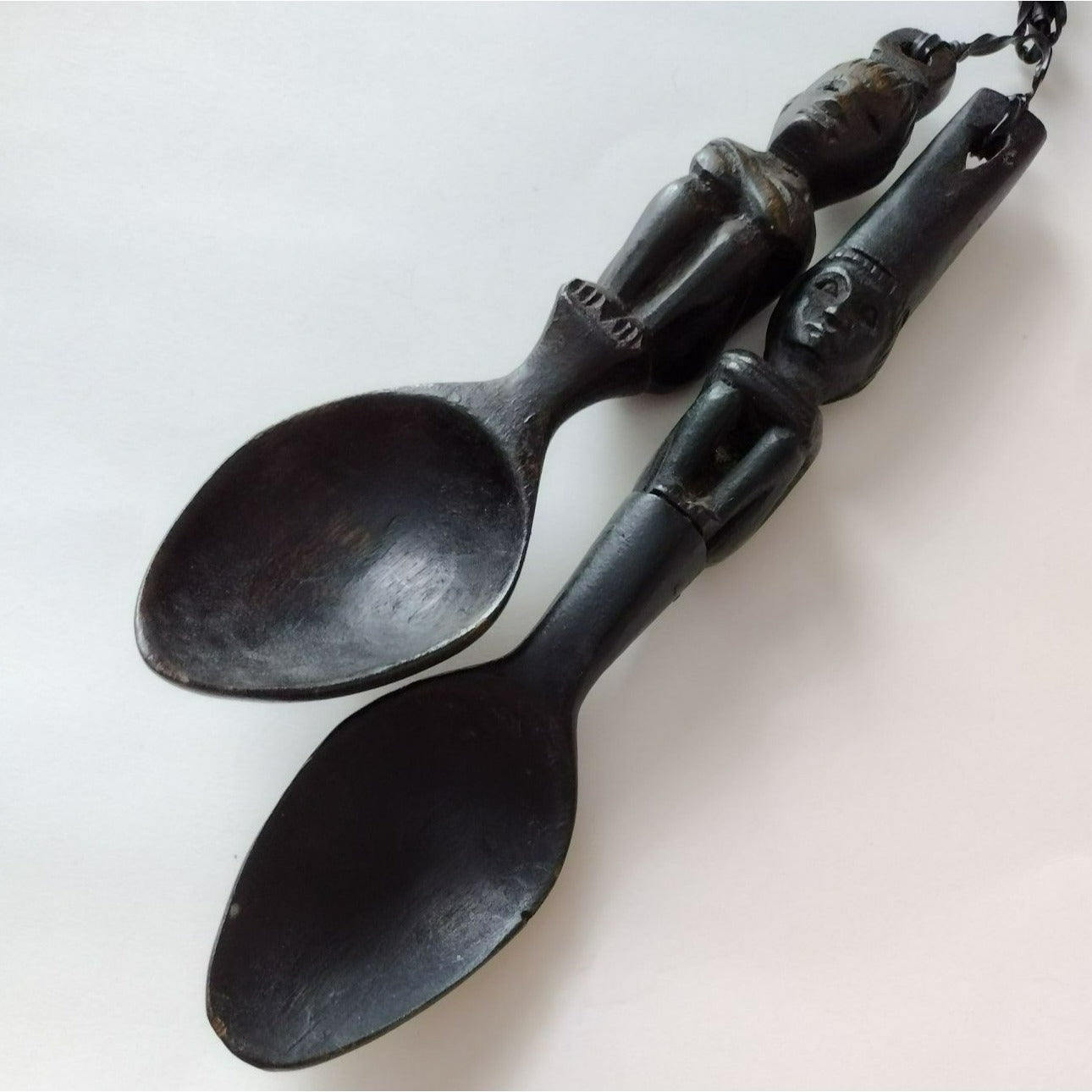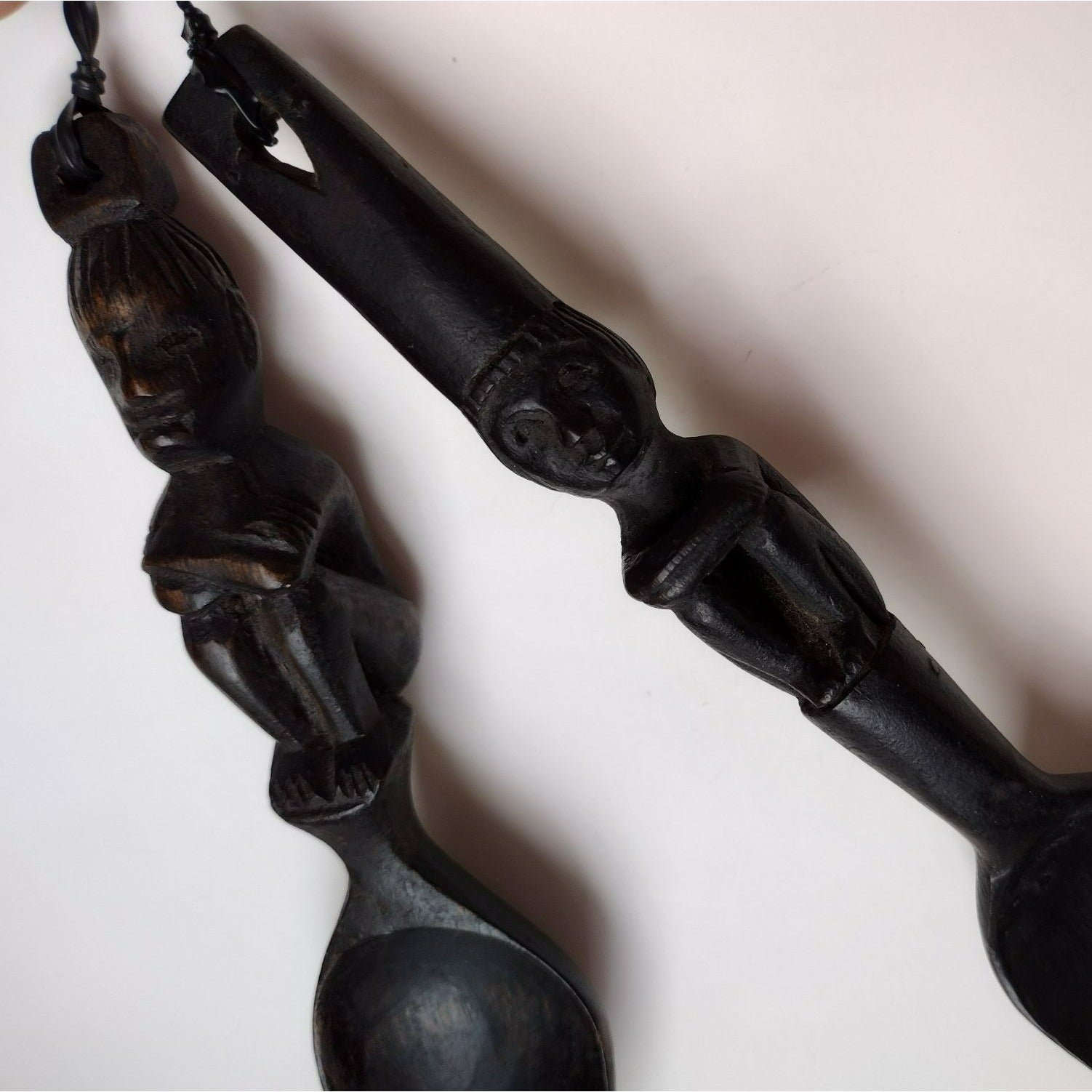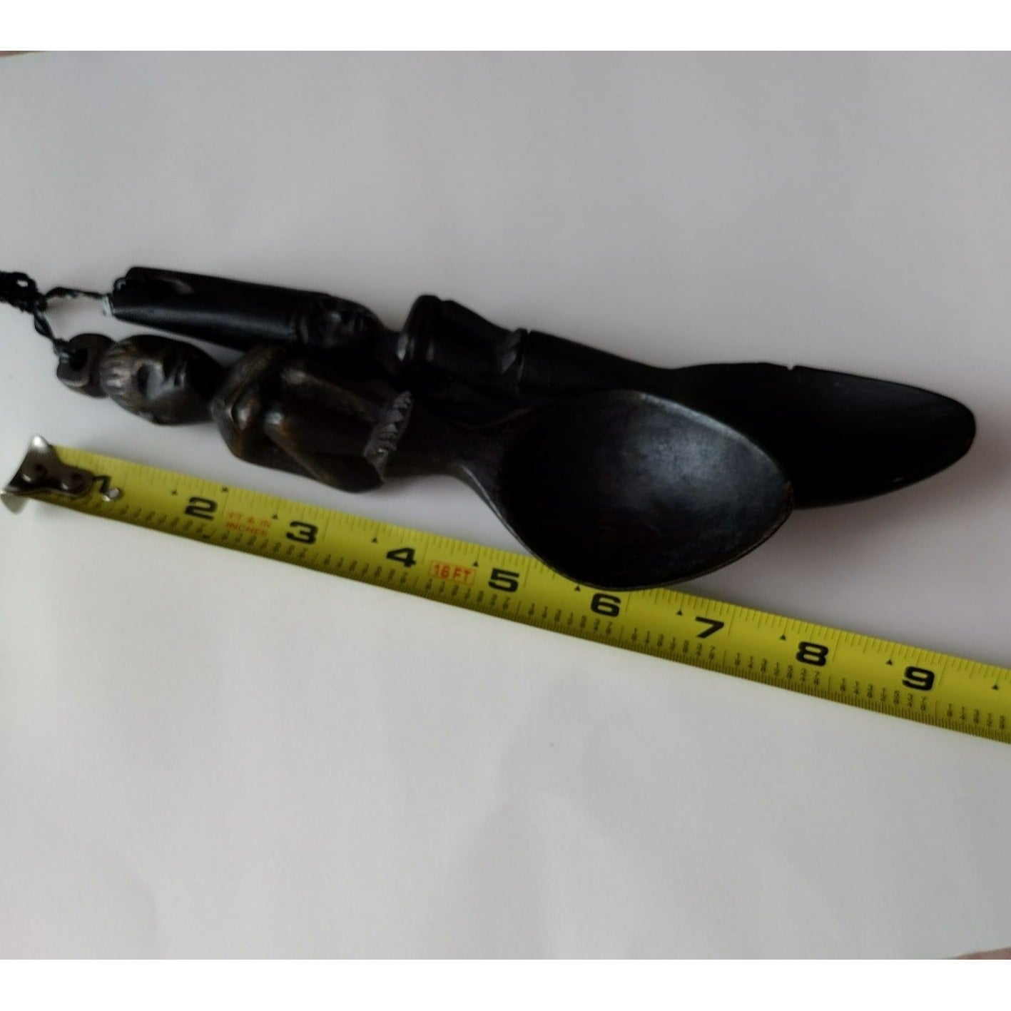 Vintage Philippine Ifugao Wooden Rice Spoons Set of 2 Tribal Carved Wood Figural